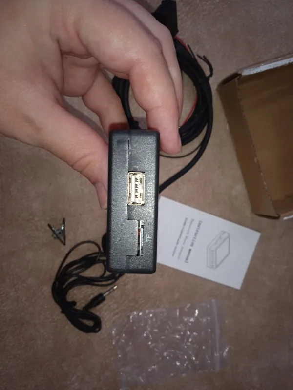 -Вы можете просто вставить этот элемент на заднее радио, а затем подключить красный провод к 12 В +, черный провод к 12 В-.