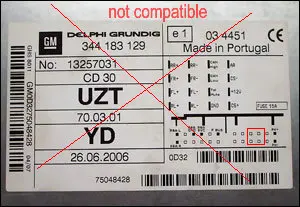 Несовместимое радио CD30 MP3 изображение, как показано ниже: