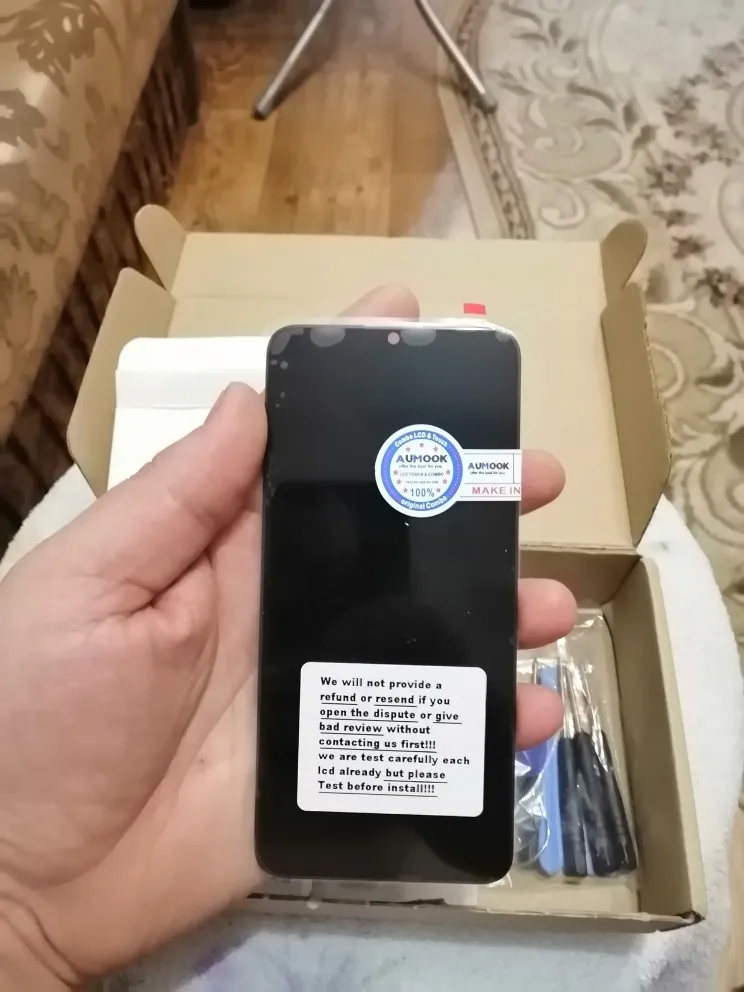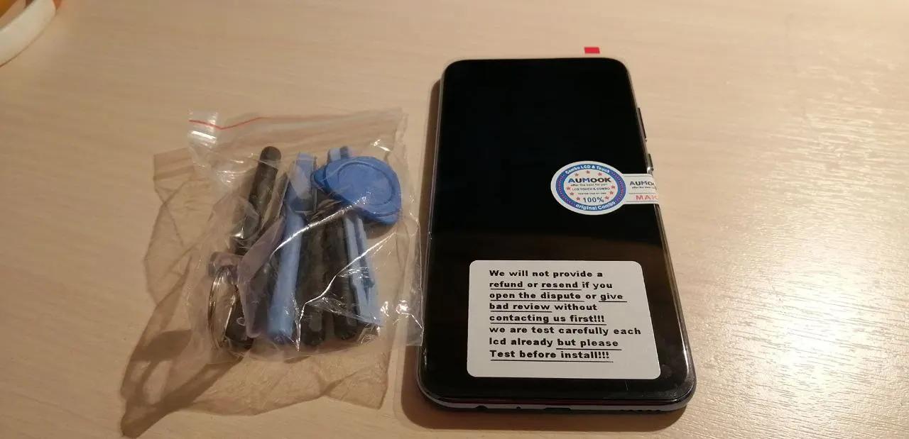 Посылка отлично упаковано, модуль внешней не повреждён, продавец положил защитное стекло и набор инструментов. Видать продавец ответственный за сохранность товара.
