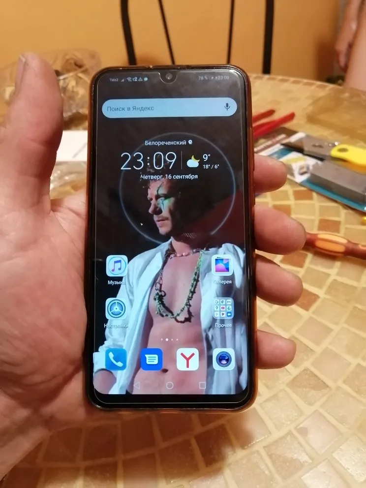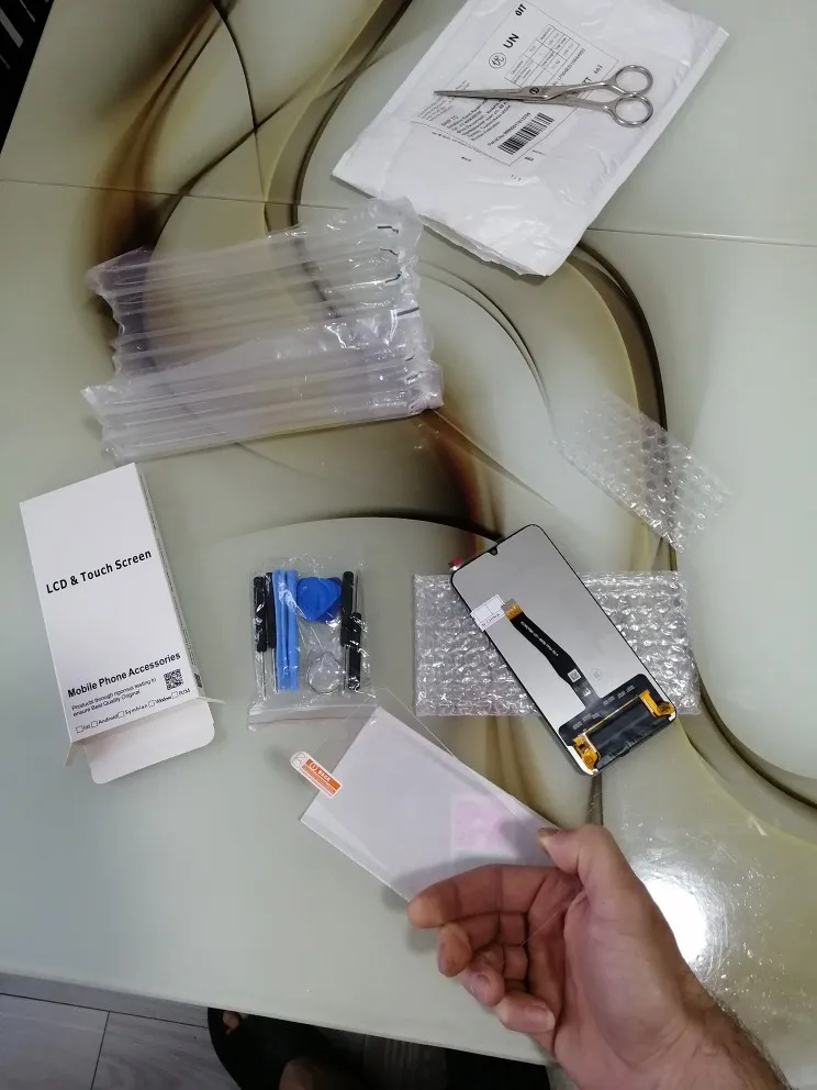 Honor 10i. большое спасибо продавцу за упаковку!!!!!! 3 разных слоя упаковки, это то что нужно для нашего качества доставки почты. что касается стекла, вопросов нет, все сделано качественно, рамка с защитными плёнками, ещё бы пасту КПТ положили.... ну это отдельная история. в комплекте есть инструменты для замены и защитное стекло, по размеру меньше, но это даже лучше, потому что чехол садится идеально. однозначно советую продавца!
