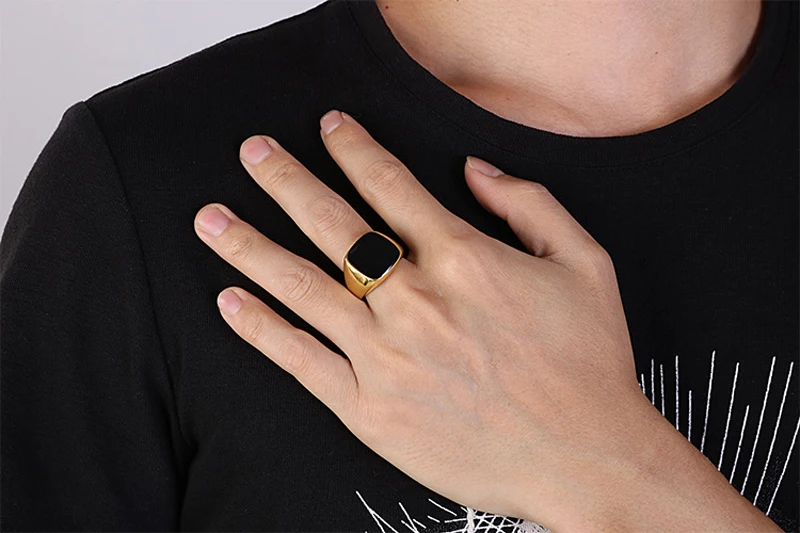 YANHUI Лидер продаж Для мужчин кольцо 18K золото Цвет с черным ониксом в камень Обручение Для мужчин t обручальное кольцо Размеры 789101112 Кольца из нержавейки R0378