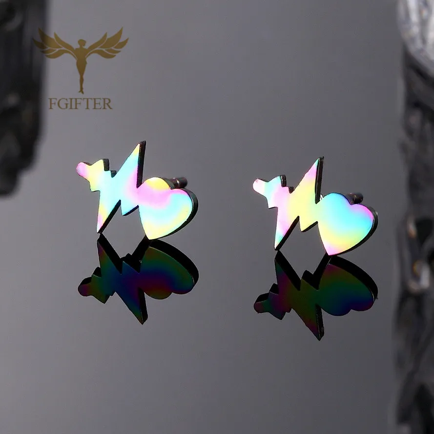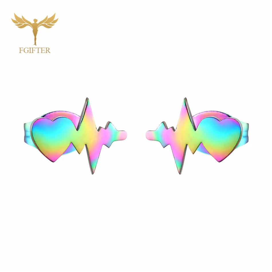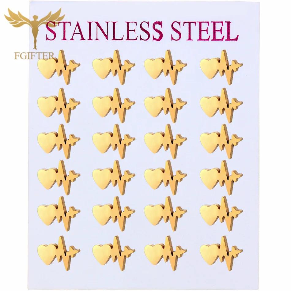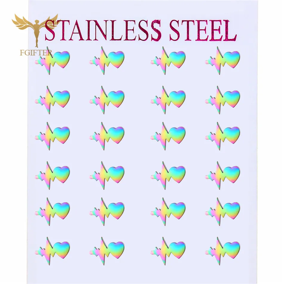 Новинка 2022 года, серьги-сердечки с ЭКГ для женщин, красочные серьги-гвоздики из нержавеющей стали, пара сережек, комплект ювелирных изделий, оптовая продажа, 12 пар