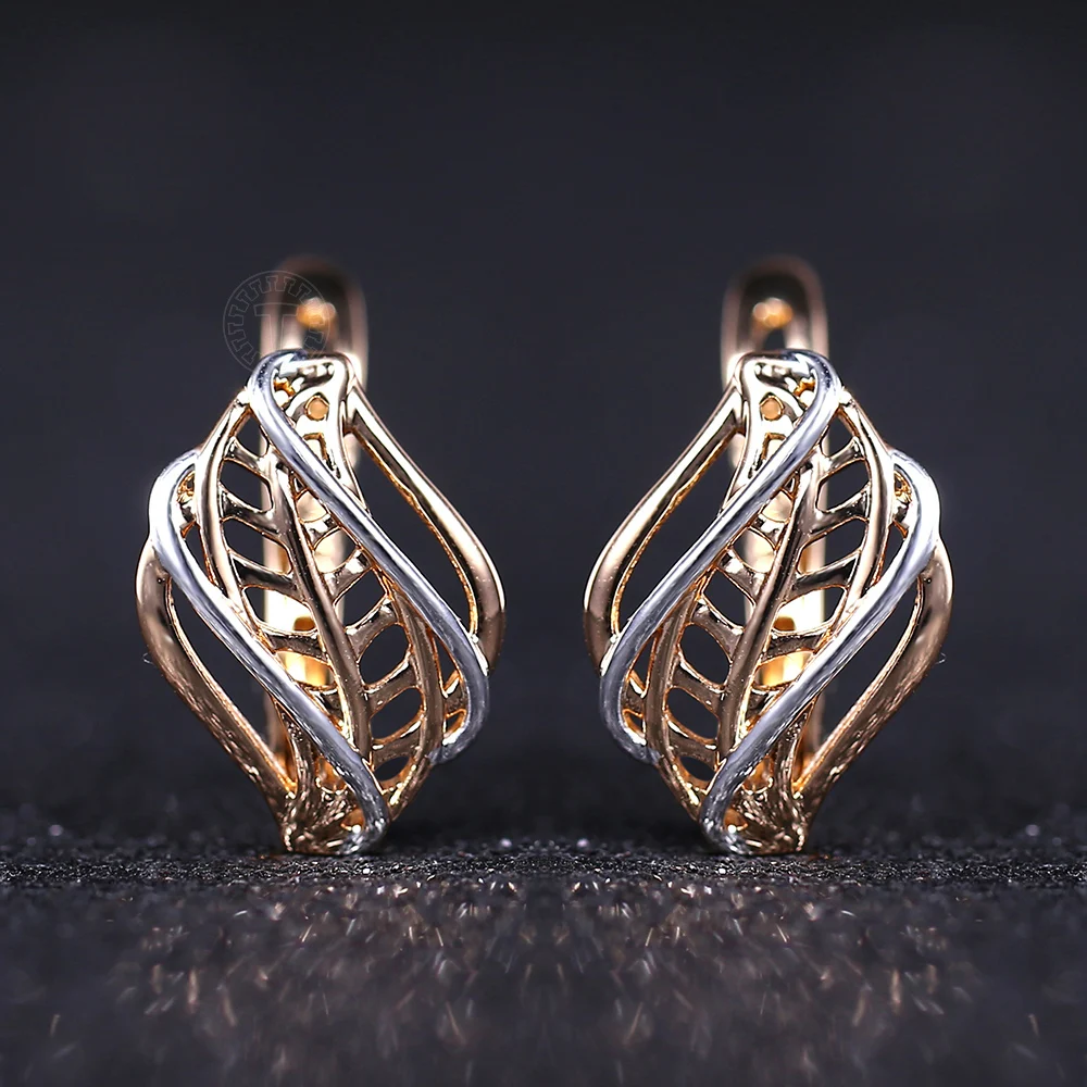 585 лист цвета розовое золото серьги для женщин для девочек с вырез...