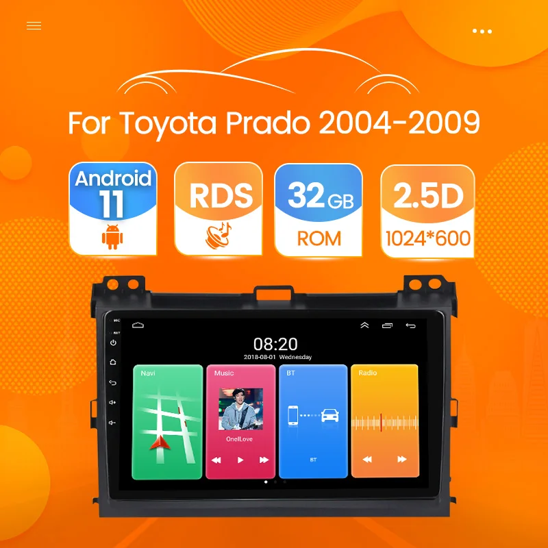 Мультимедийная система на Android 11, 2 Гб ОЗУ, 32 Гб ПЗУ, автомобильный радиоприемник с навигацией GPS плеер для Toyota Land Cruiser Prado 120 2004-2009 BT без DVD SWC