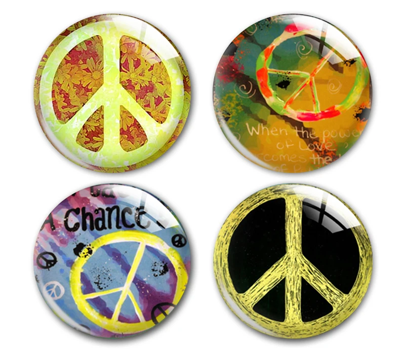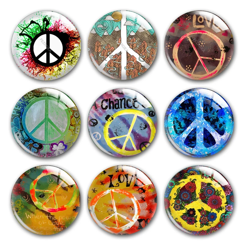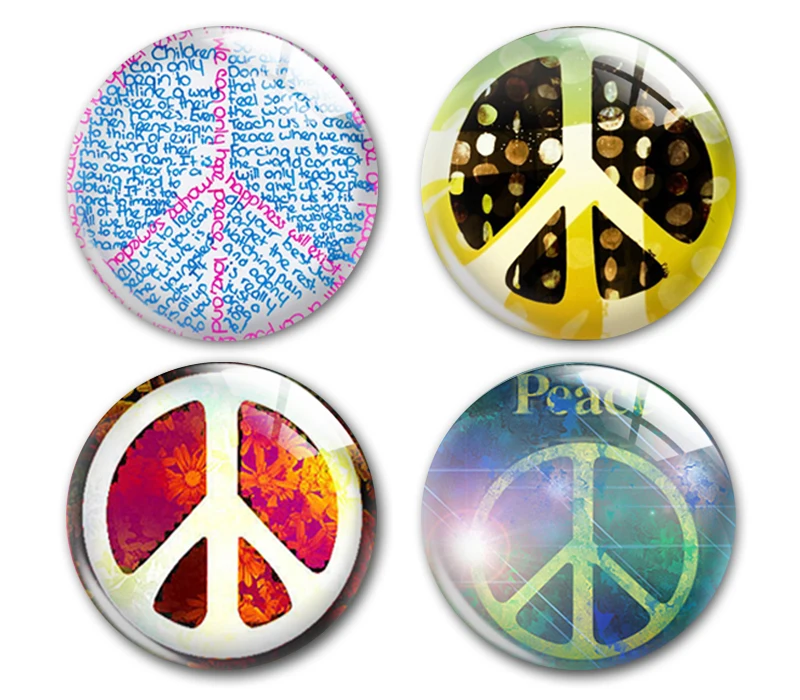 Ручная работа знак мира круглый фото стекло кабошон демонстрационный плоский обратно, DIY aretes de mujer bijoux femme anillo jewelry making supply.
