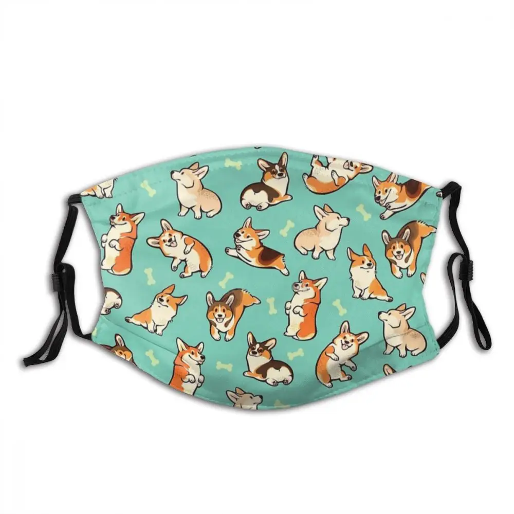 Jolly Corgis In Green многоразовая маска для лица с фильтром, Пылезащитная маска, респиратор, муфельная маска для рта