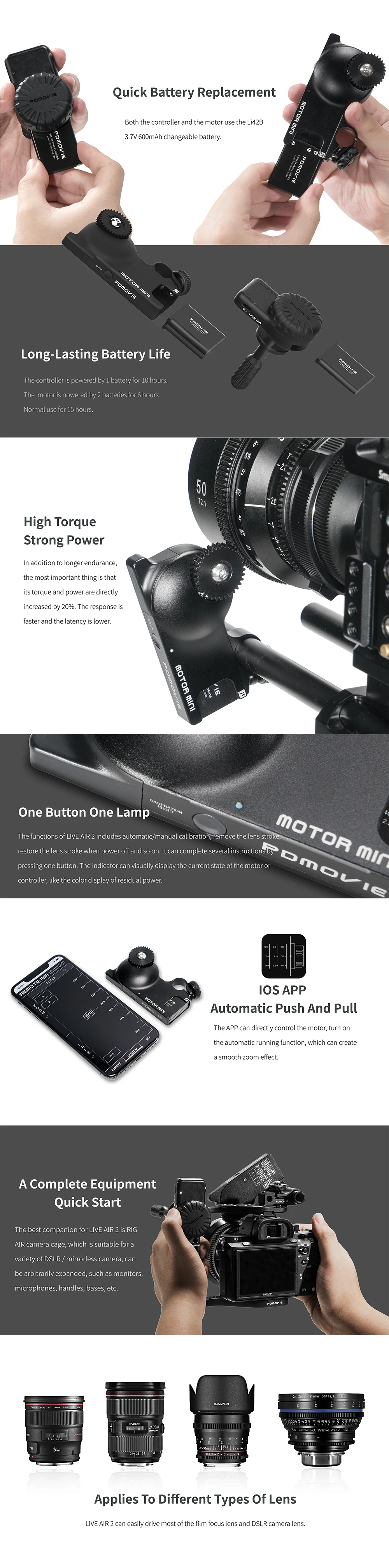 PDMOVIE LIVE AIR 2 Bluetooth беспроводная система непрерывного изменения фокусировки для DJI ronin s zhiyun crane 2 MOZA aircross Gimbal или SLR объектив камеры