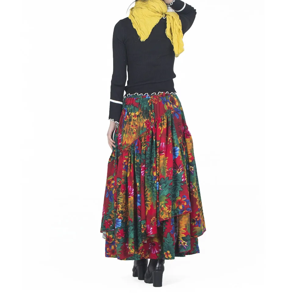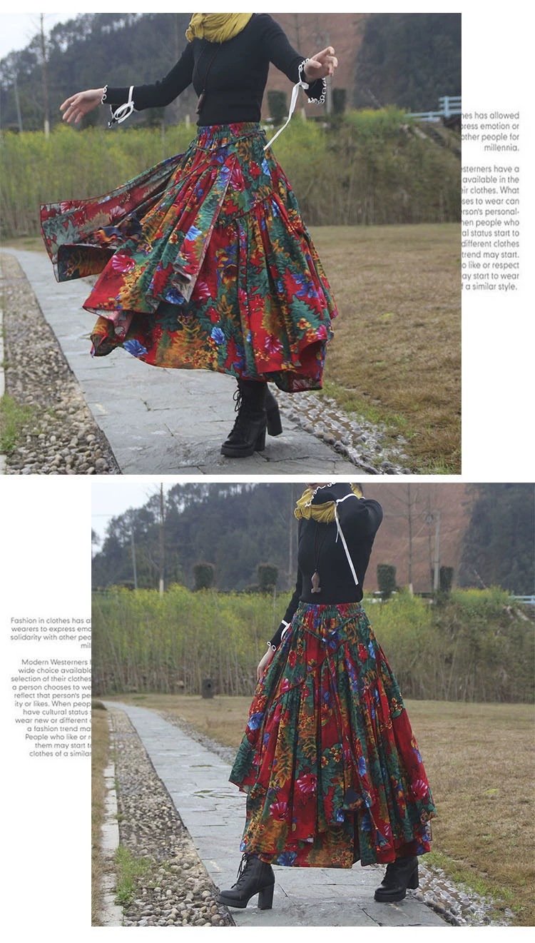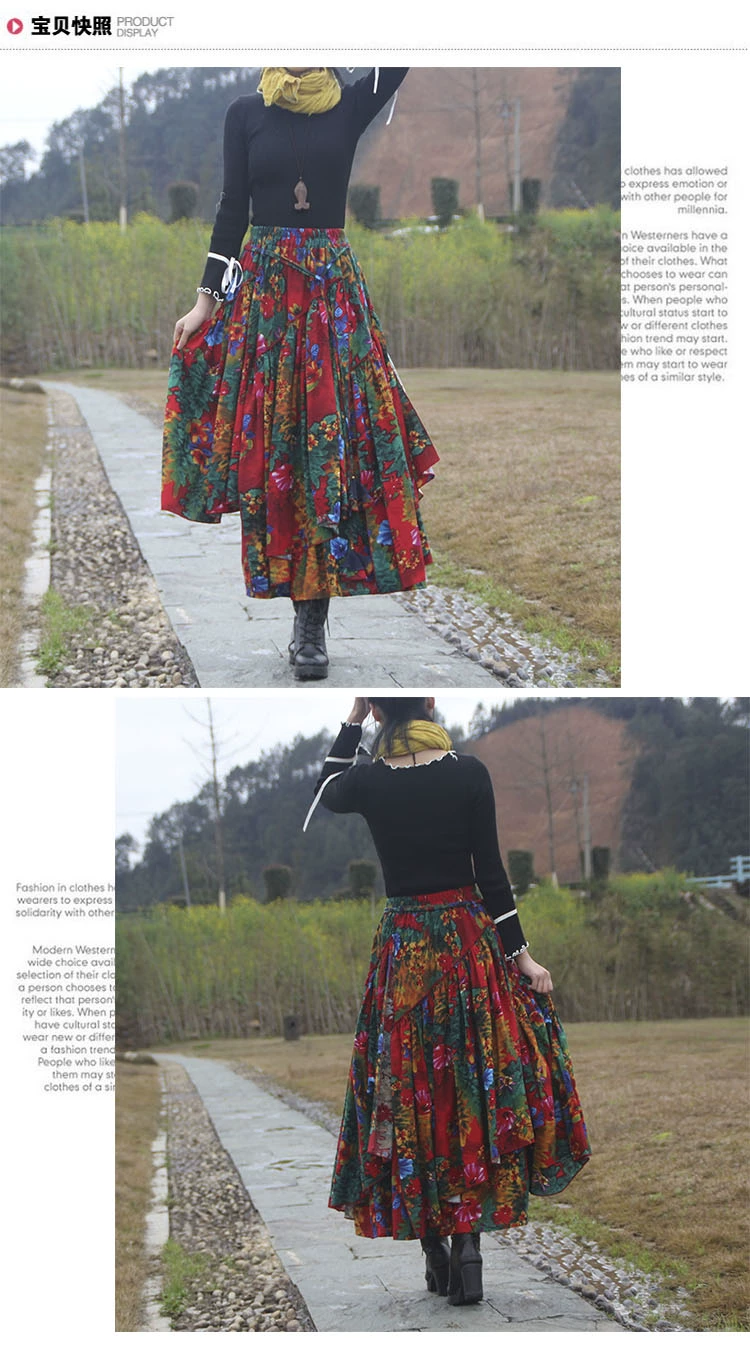Женская юбка с большим подолом TIYIHAILEY, длинная красная трапециевидная юбка из хлопка и льна, с эластичным поясом, с цветочным принтом, 2021