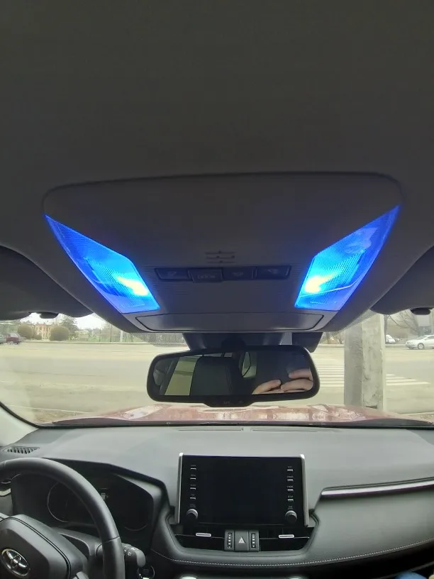 До Москвы буквально за 10 дней доехали! На рав4 2021 подошли все лампы. Только в задний пассажирский плафон лампа чуть длиннее, чем штатная, но тем не менее, удалось установить без проблем. Светят лучше штатных. Приятный белый свет, не слепит в отличии от плат!