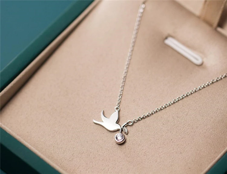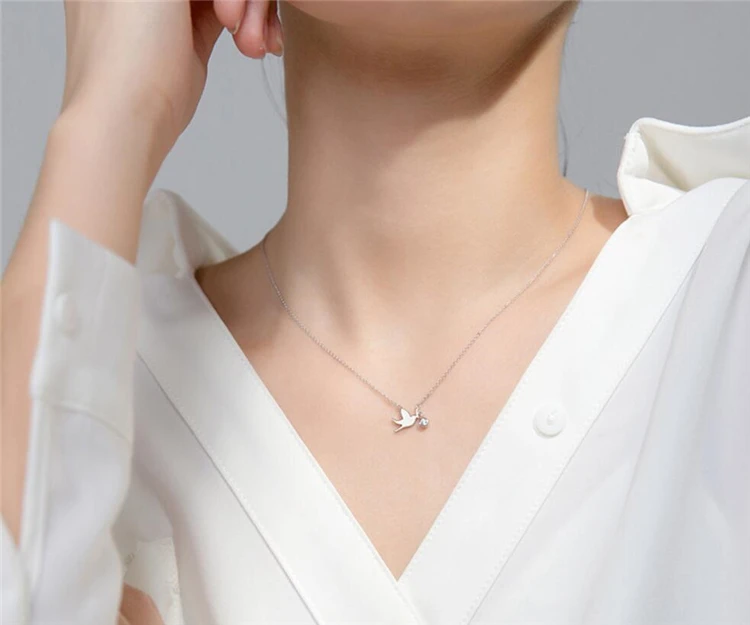 Ожерелье с памятью свежей милой птичьей ласточки, голубь, женское ожерелье с серебряной цепочкой до ключиц SNE543