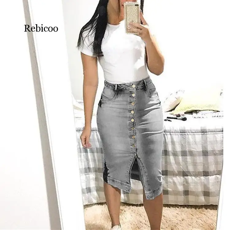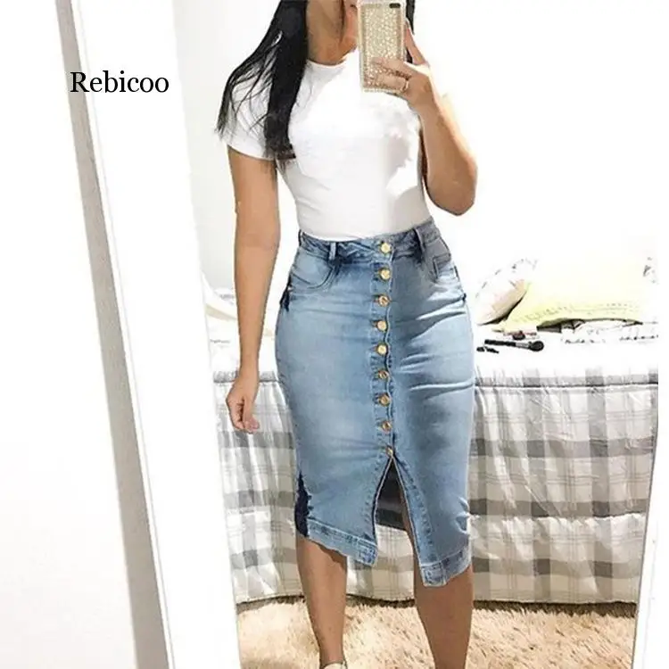 Женская модная джинсовая юбка, юбка с разрезом спереди и разрезом, ...