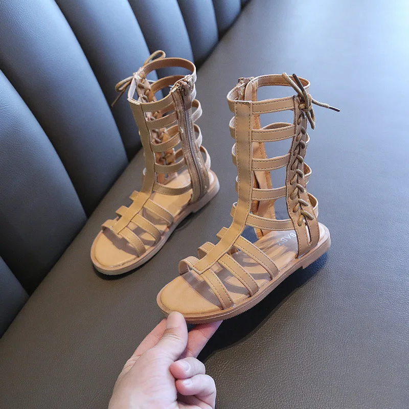 Модные сандалии для больших девочек; Летние сандалии-гладиаторы с в...