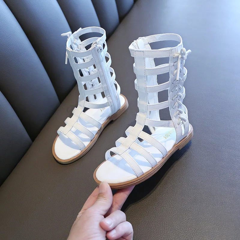 Босоножки длинные в римском стиле для маленьких девочек, английский стиль, Классическая обувь, белые, для детей 1, 2, 3, 4, 5, 6, 7, 8 лет, лето 2020