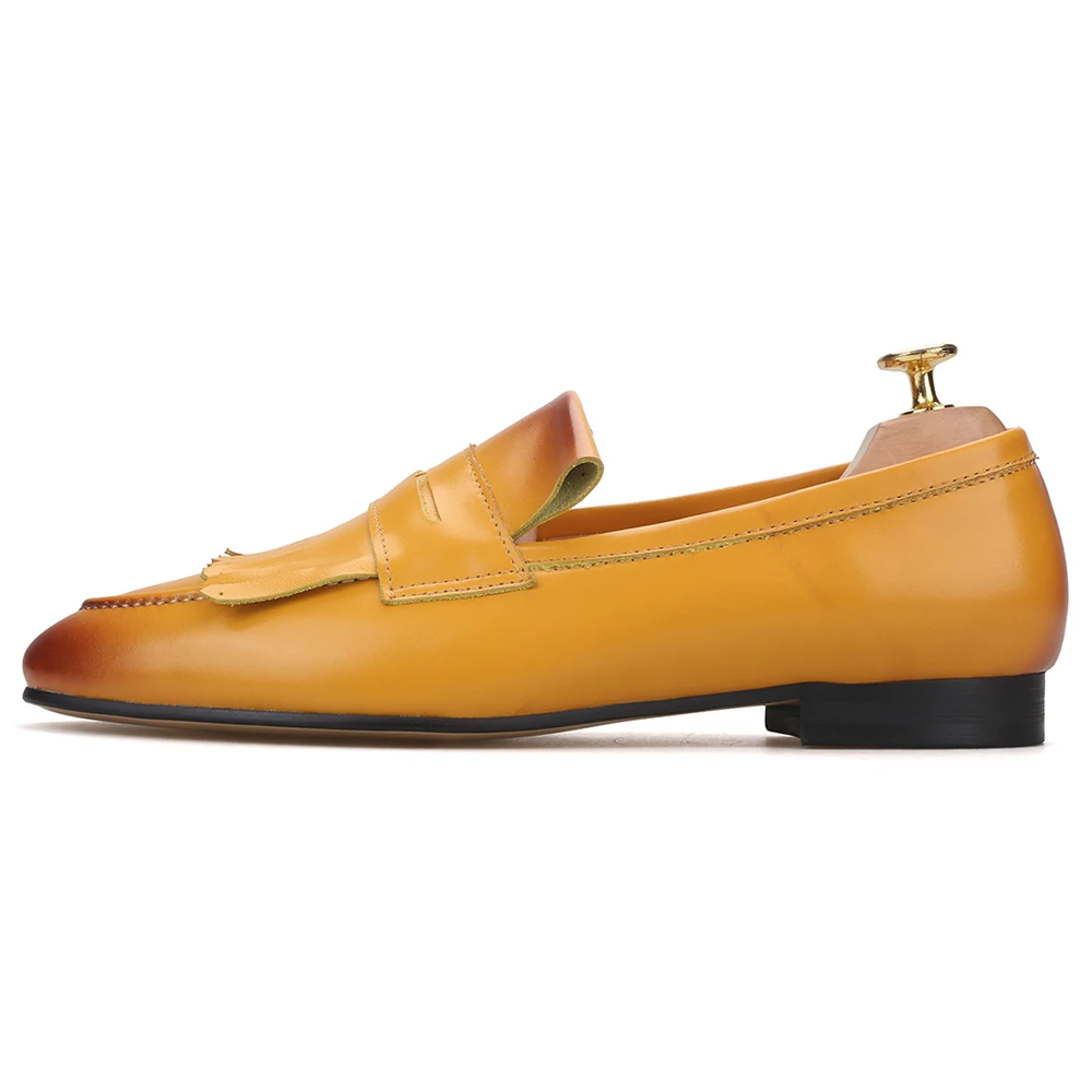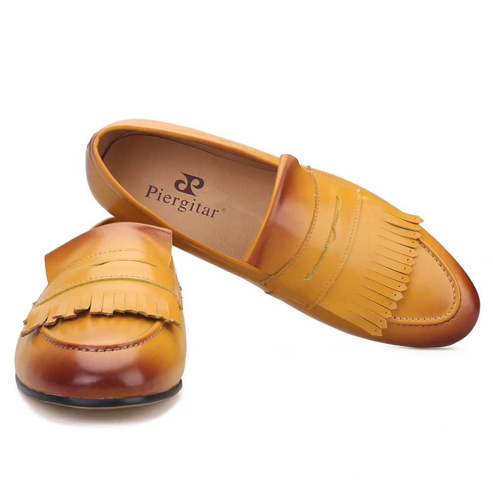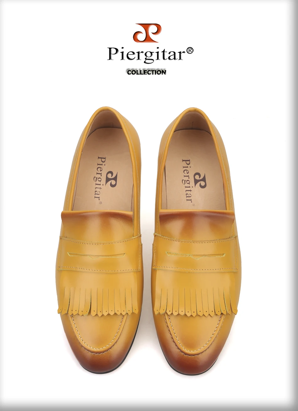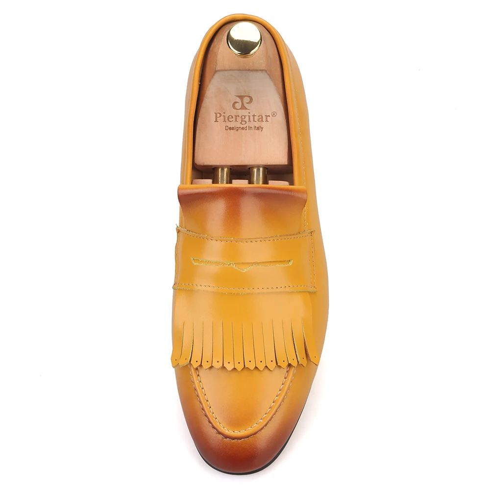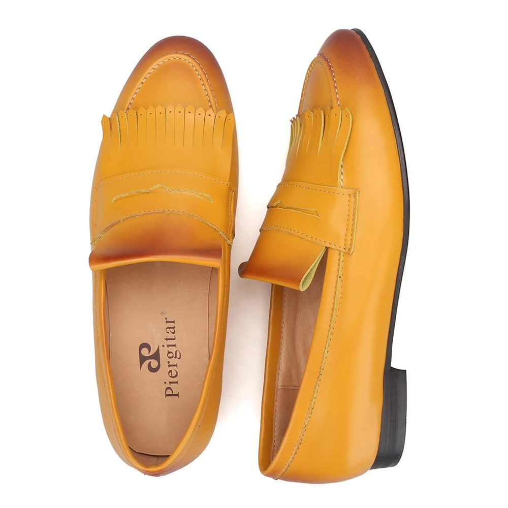 Туфли Piergitar мужские из телячьей кожи, Пенни лоферы, без застежки, классические туфли для свадьбы и вечерние, ручная работа, курительные тапочки, желтые