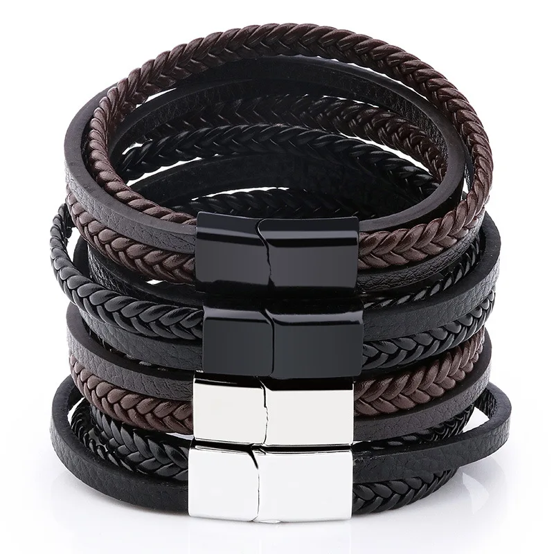 Мужские и женские браслеты из натуральной кожи, из нержавеющей стали многослойная плетеная веревка
