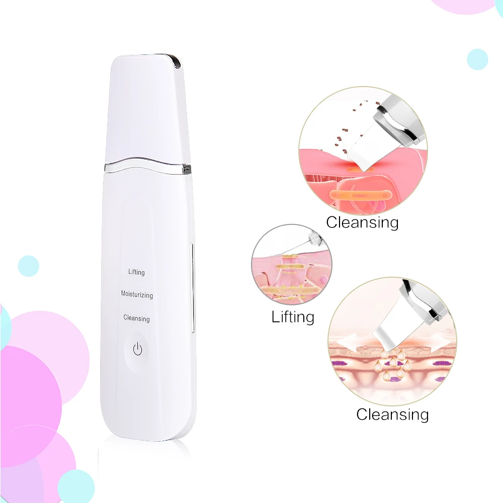 Новый ультразвуковой ионный скруббер для кожи перезаряжаемый микродермабразия Глубокая чистка высокочастотная вибрация пилинг массажер для лица спа