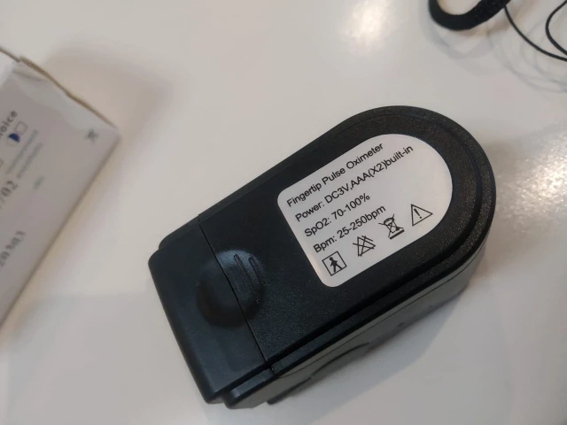 покупка пришла за 2 недели. Батарейки в комплекте не идут, но это и понятно: пересылать небезопасно. Пальчиковые. Все работает: пульс, насыщение кислородом. Недорого. Пусть будет. Врачи часто даже в поликлиниках при приеме пациентов не имеют при себе.