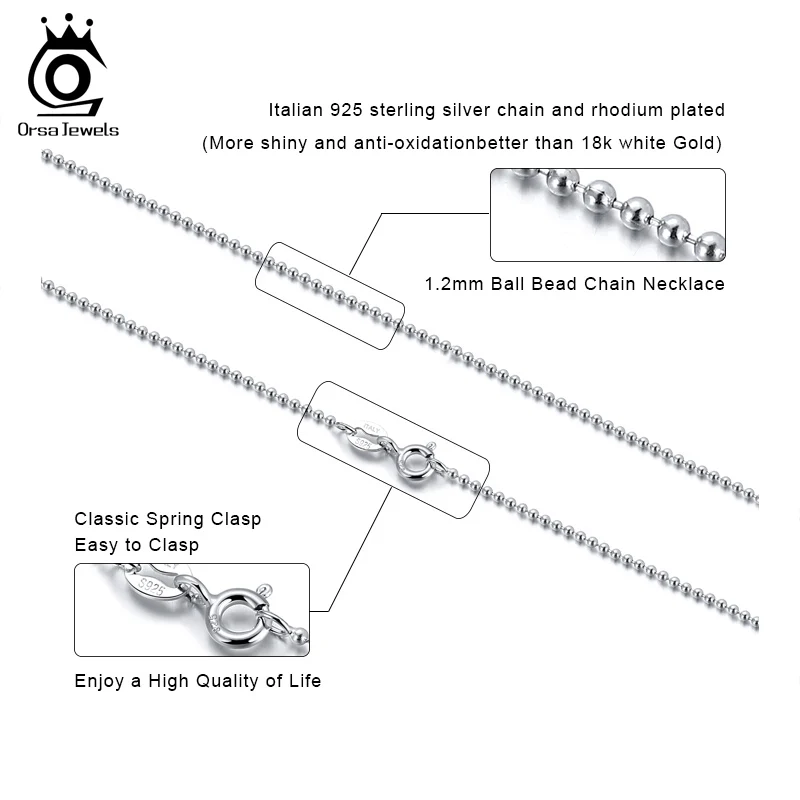 ORSA JEWELS ожерелье с итальянской боковой цепью, искусственное серебро с шариком 1,2 мм, ожерелья из стерлингового серебра, ожерелья, цепочки, ювелирные изделия SC24