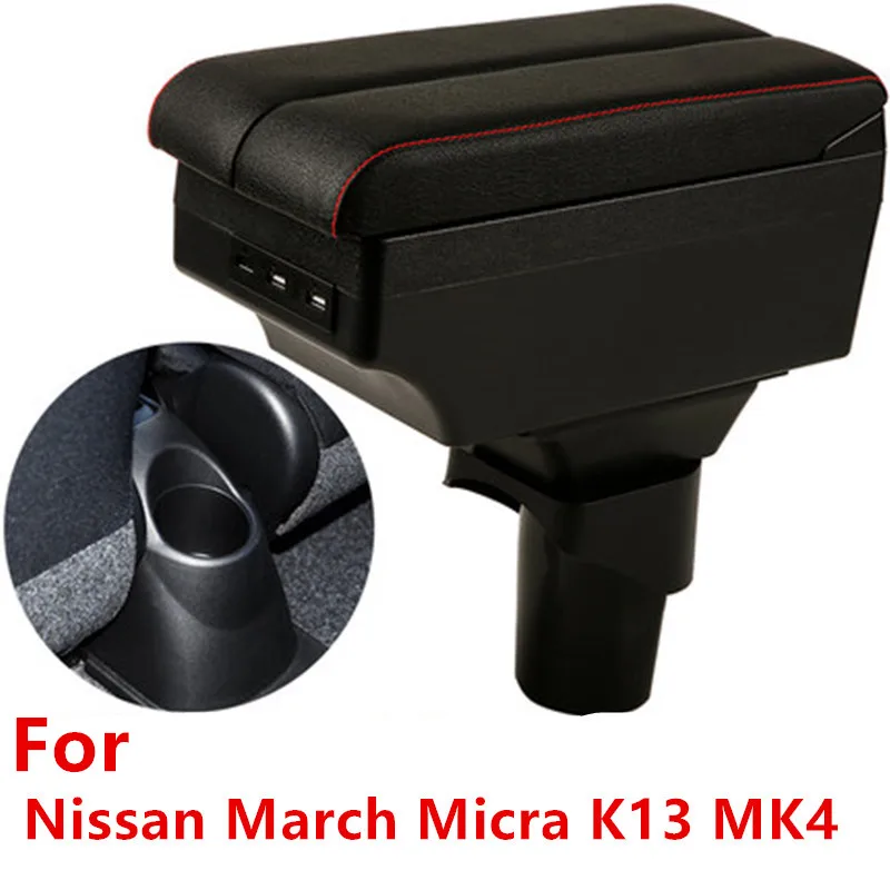 Центральный подлокотник для Nissan March Micra K13 MK4 IV, контейнер для хранения с подстаканником и USB-интерфейсом