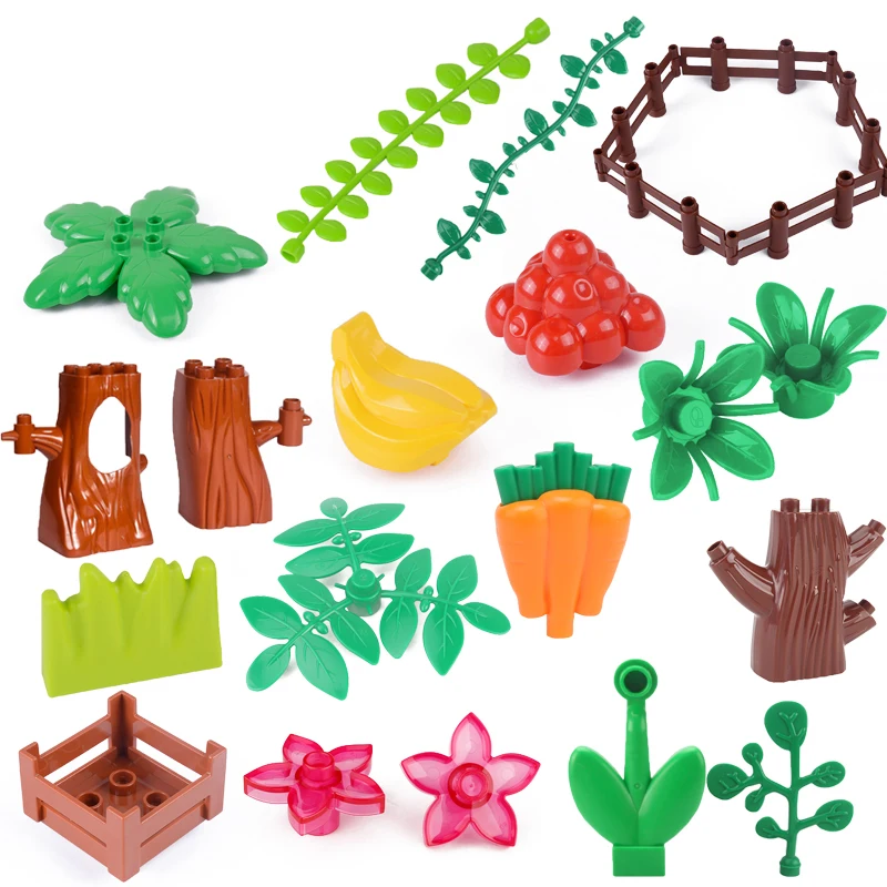 Конструктор большого размера, детали для растений, трава, лоза, лист, цветок, виноград, банан, пень, забор, игрушки большого размера для детей, подарок для фермы