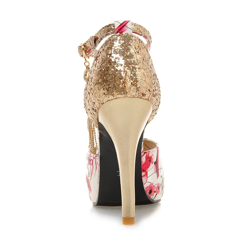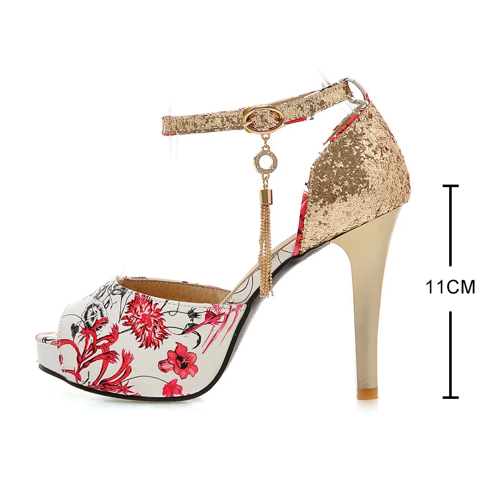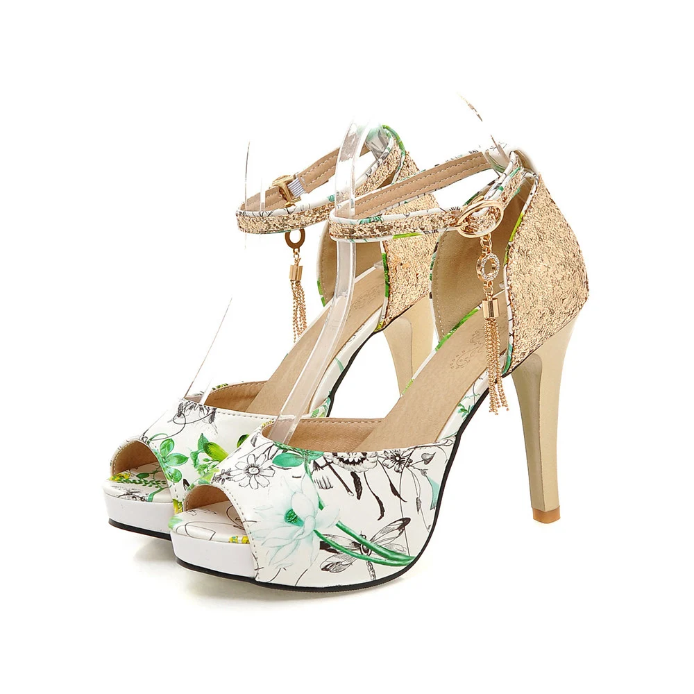 Женские летние туфли с цветочным принтом; Женские босоножки на платформе и высоком каблуке с открытым носком; Вечерние модельные свадебные туфли; femal zapatos de mujer