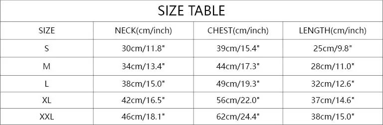 Item SizeS/M/L/XL/XXL