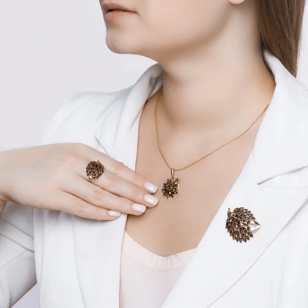 Кольцо «Ёжик» с раухтопазами SOKOLOVЭтот очаровательный зверёк украсит вашу руку, чтобы вы принимали комплименты в режиме нон-стоп. Богатый декор из шоколадных раухтопазов огранки «Маркиз» – и ёжик совсем как настоящий! Золочёное серебро составляет эффектный контраст с насыщенным оттенком камней. Остроумный, но вместе с тем стильный дизайн позволяет стилизовать как авангардные, так и более женственные образы. Подчеркните свой оригинальный вкус с помощью всего одного аксессуара.