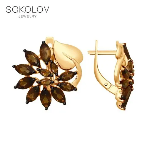 Серьги SOKOLOV из серебра с раухтопазами, Серебро, 925, Женские, Серьги 2022 тренд, Оригинальная продукция