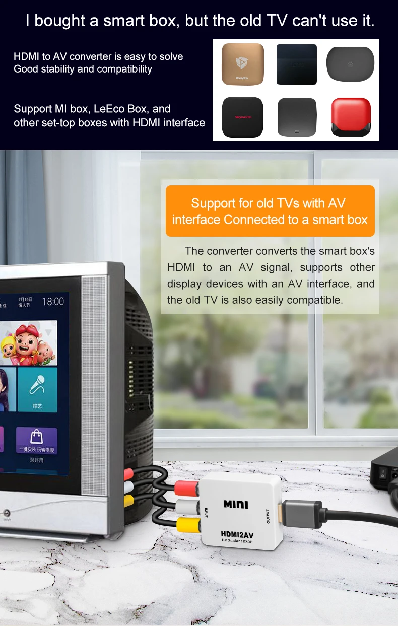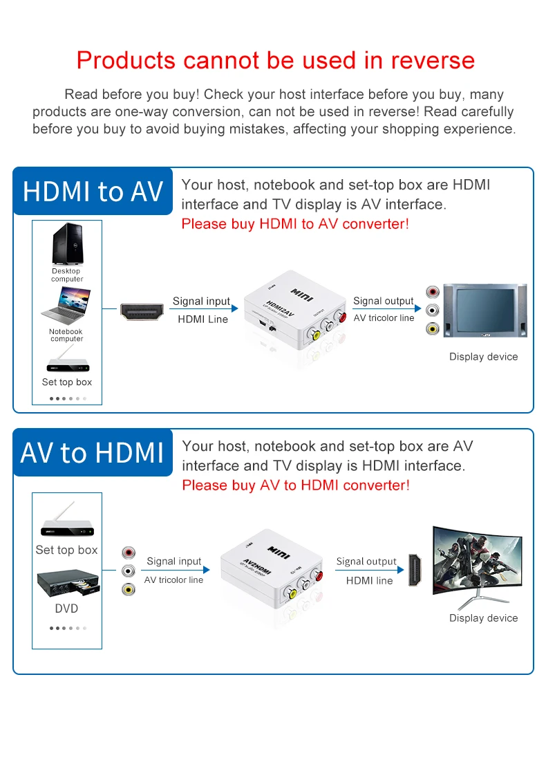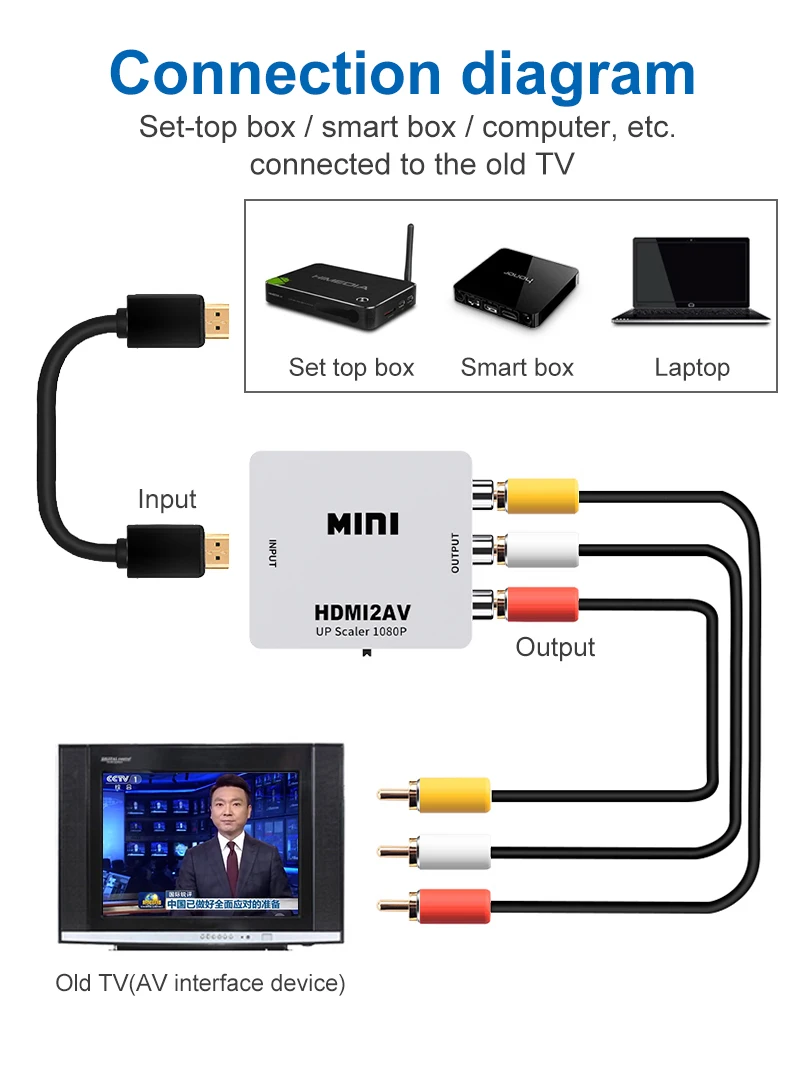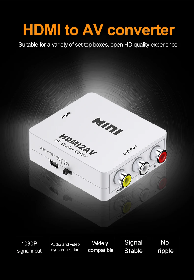 HDMI-адаптер, HD 1080P, для AV-скалера, композитный видеоконвертер, HDMI-совместим с RCA CVSB LR Video Mini HDMI2AV