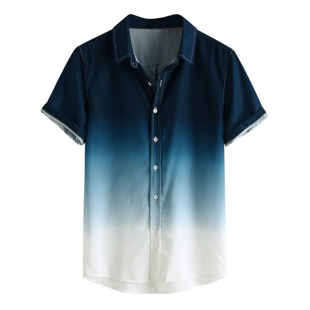 Рубашка мужская с коротким рукавом и отложным воротником, Стильная сорочка с градиентным цветом, на пуговицах, подходит для школы, работы, повседневной носки, отличный подарок