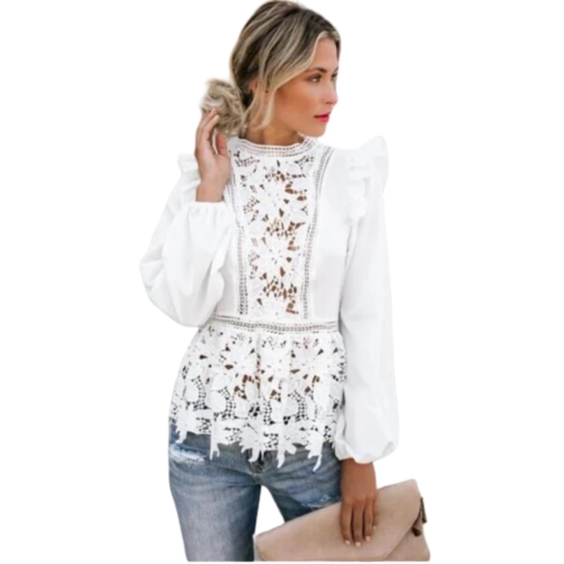 Женский цветочный кружевной белый укороченный топ в стиле бохо, летняя пляжная элегантная рубашка с вырезами на спине, женская одежда в стиле Харадзюку с длинным рукавом, праздничные Топы