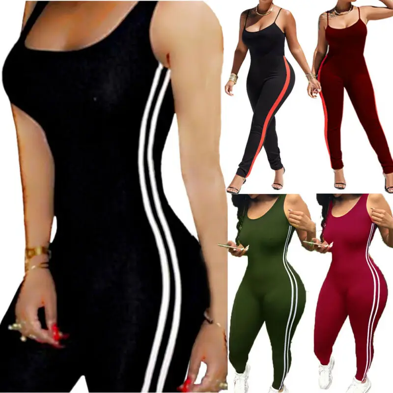 Сексуальные полосатые женские Комбинезоны для йоги спортивный тренажерный зал без рукавов для тренировок женский цельный Бег Фитнес Леггинсы Брюки спортивный комбинезон