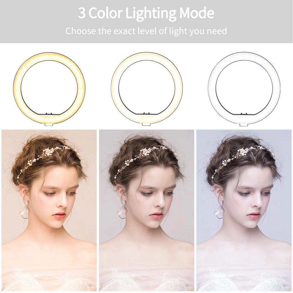 1).9 режимов яркости. 2).3 вида цветов, плавное затемнение света, белый свет, теплый свет, мягкий свет. 3). С студией для заполнения светового фото, портретный Автоспуск заполняет свет. 4). Кольцевая Светодиодная лампа для фотостудии с usb-разъемом. 5). Подходит для многих социальных, таких как Youtube Макияж Видео в живую, фотостудия свет, фотографии.
