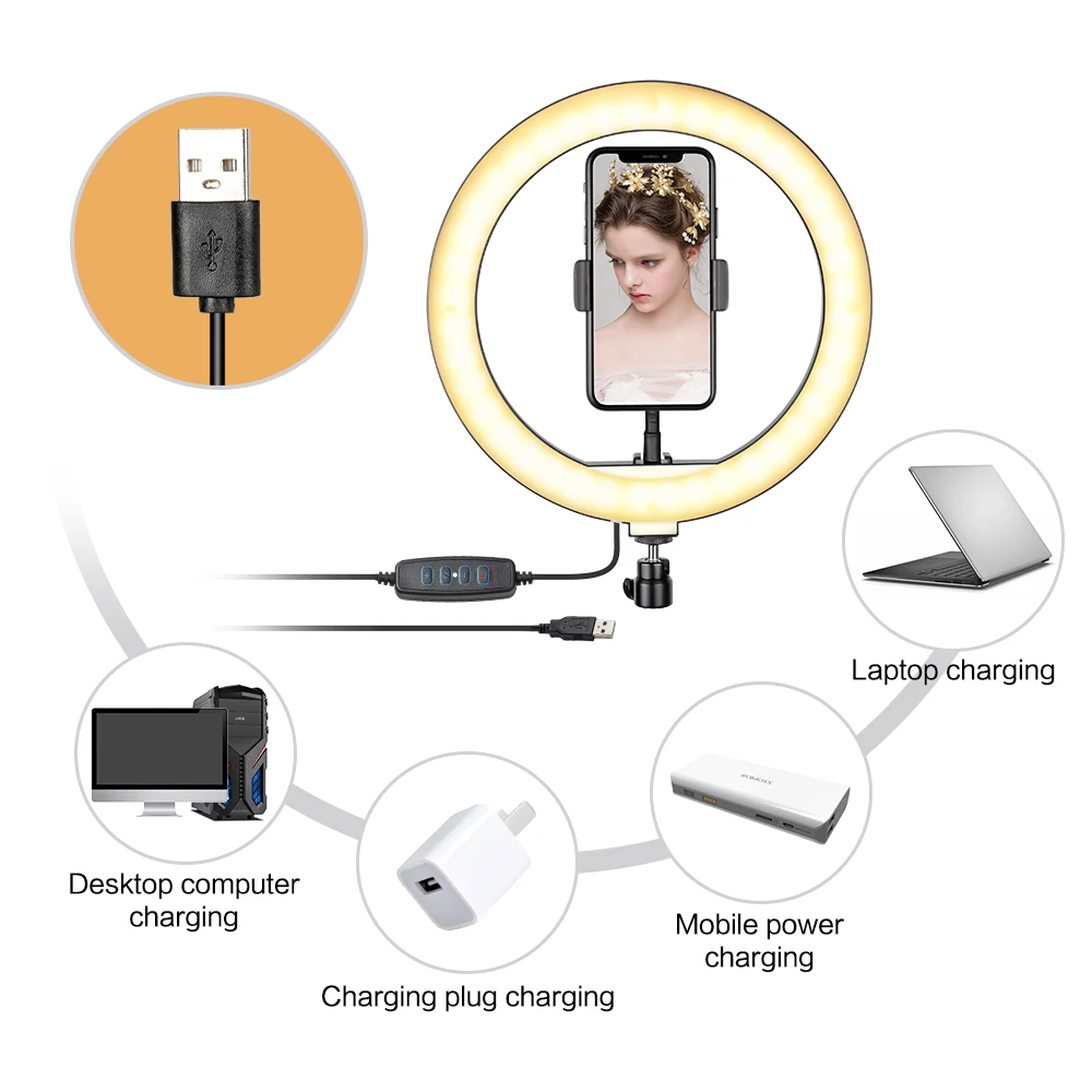 10 дюймов26 см светодиодный светильник для видеосъемки кольцевая лампа для селфи USB кольцевая лампа с штативом и держателем для телефона для макияжа на Youtube