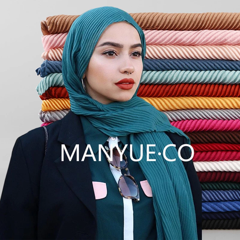Горячая Распродажа плиссированный длинный хиджаб, элегантная шаль, ...