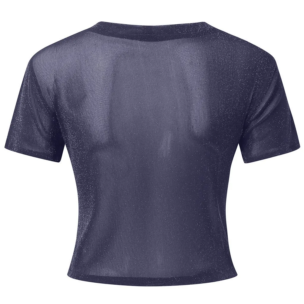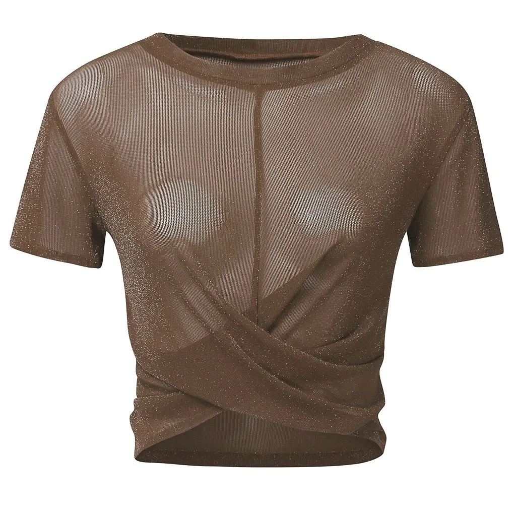 Женская сексуальная прозрачная короткая блуза с коротким рукавом и сеткой