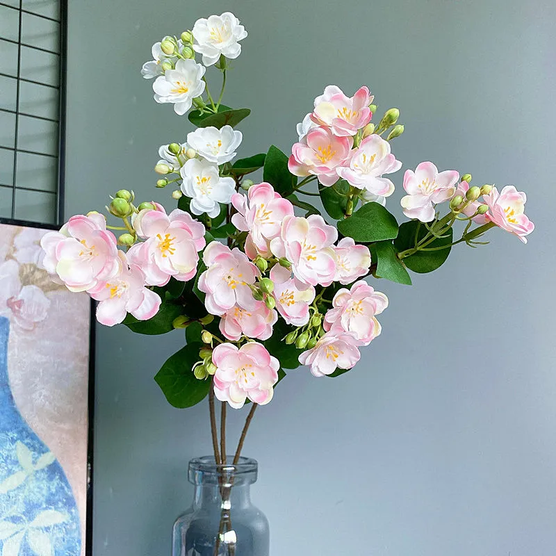 Цветочная ветка жасмина с искусственными листьями, шелковые искусственные цветы для дома, отеля, торгового центра