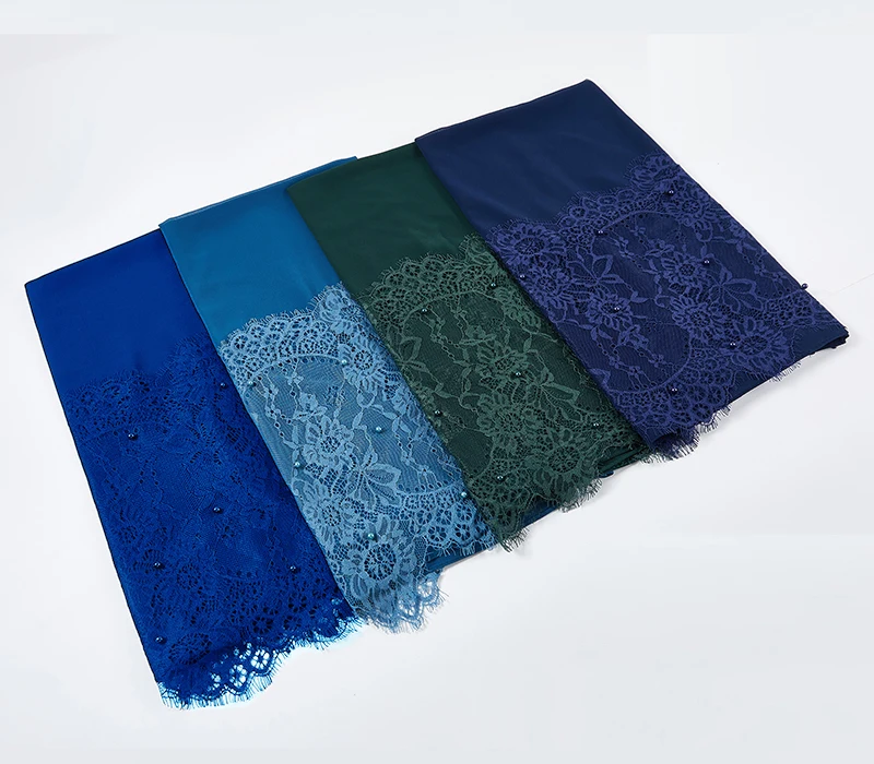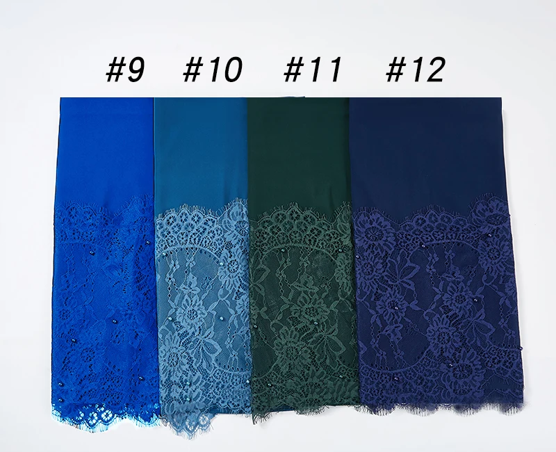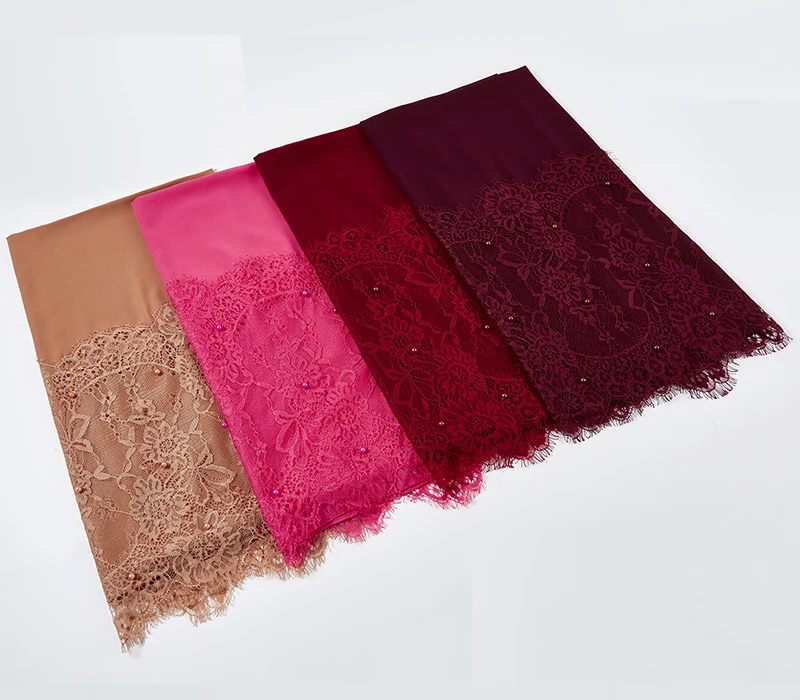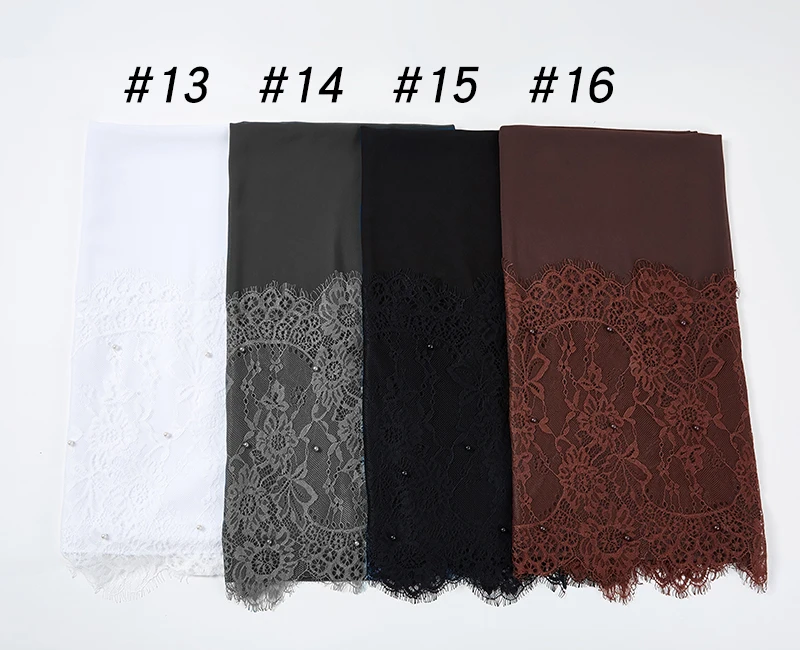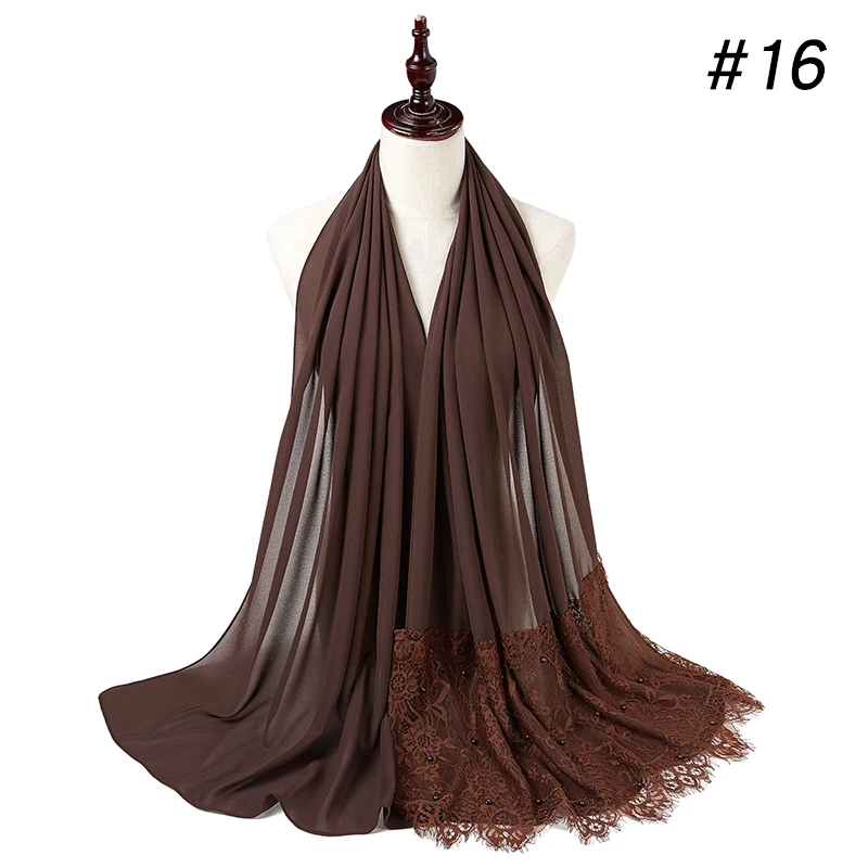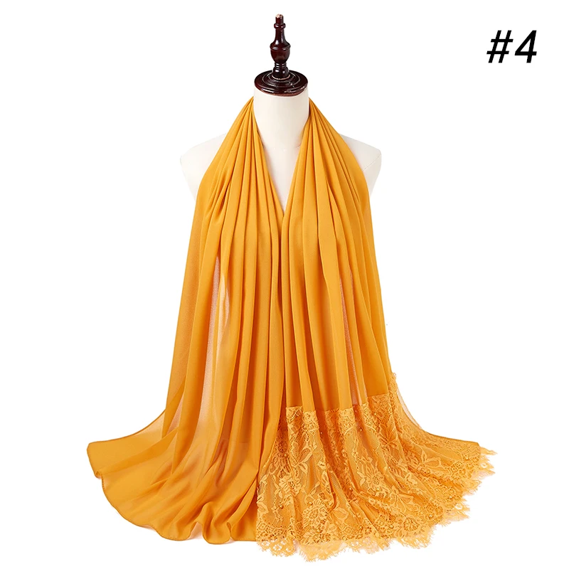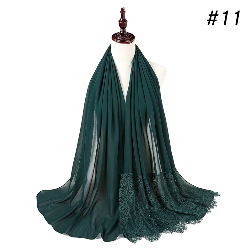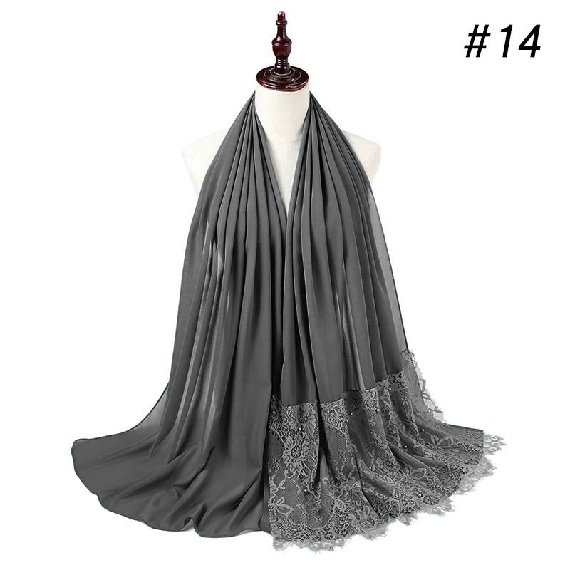 Простой шифоновый кружевной шарф с жемчугом, мусульманский шарф, шаль, мусульманский Однотонный женский шарф, роскошный фуляр, Femme Hijabs, 10 шт.лот
