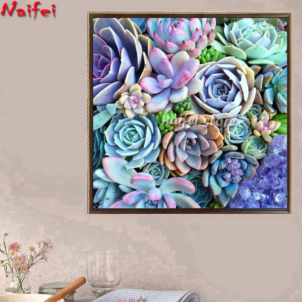 Полностью сверлильный квадратный кристалл картины суккулентные растения Алмазная Вышивка Полный Круглый 5d Diy алмазная живопись кактус Алмазная мозаика
