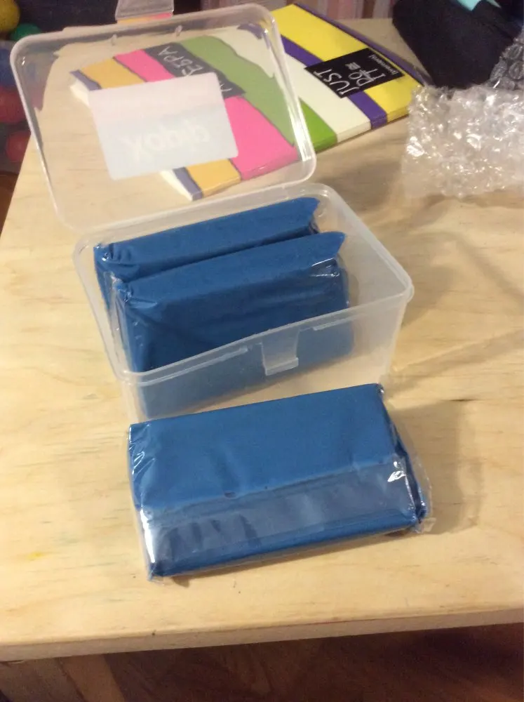 посылка шла нуууу ооооочень долго.. с ноября... за это снижены звезды....коробка вся разбита...смысла в ней нет....теперь....ну с глиной ничего и не могло случиться... пока ждал пришлось сходить и купить в магазине..