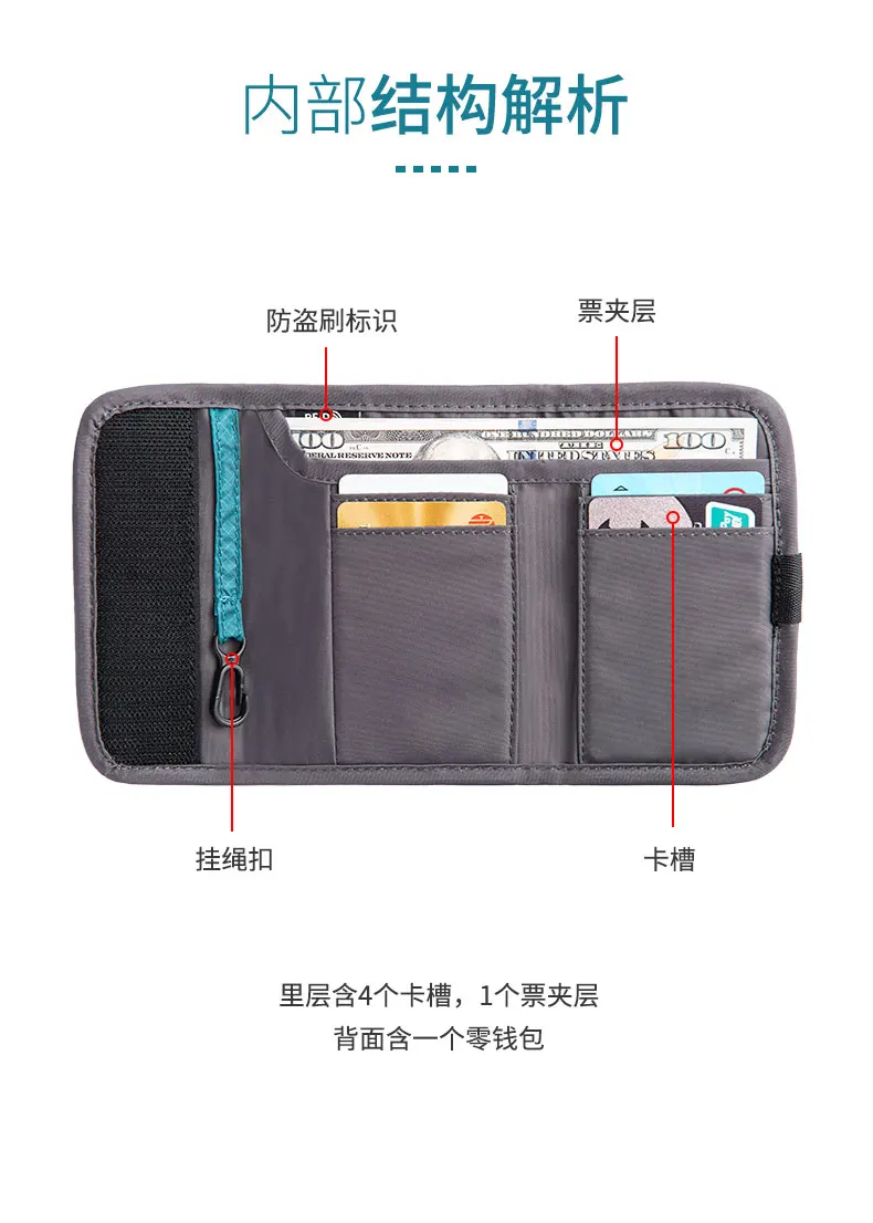 Кошелек для путешествий, с защитой от кражи, с отделениями для документов и билета, 2020
