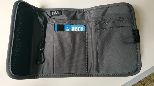 Мне очень нравится минималистичный вид и легкий вид этого кошелька. На ощупь Высокое качество и прочность, даже если вы чувствуете, что материалы действительно тонкие. Отличное сочетание! Претензии о блокировке RFID серьезны, я даже не могу оплатить свою банковскую карту в одном из слотов, если он откроет бумажник.
