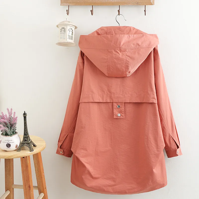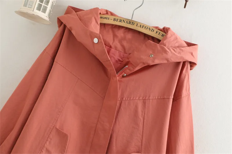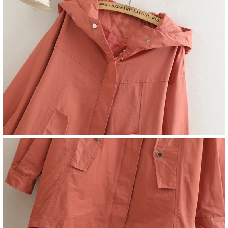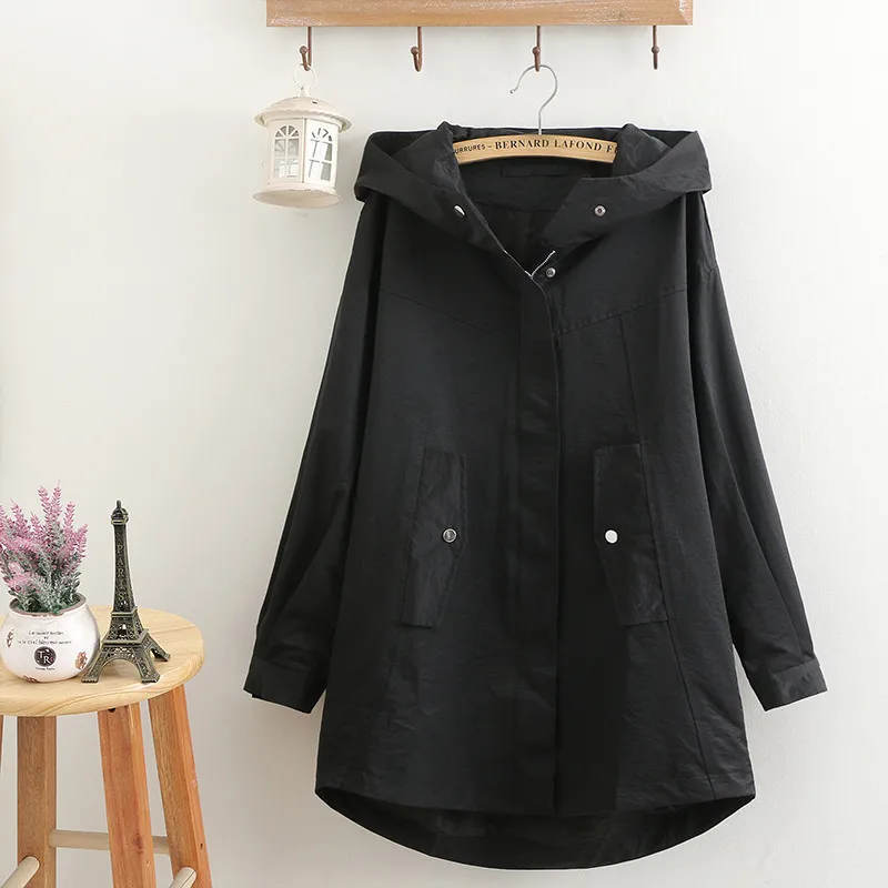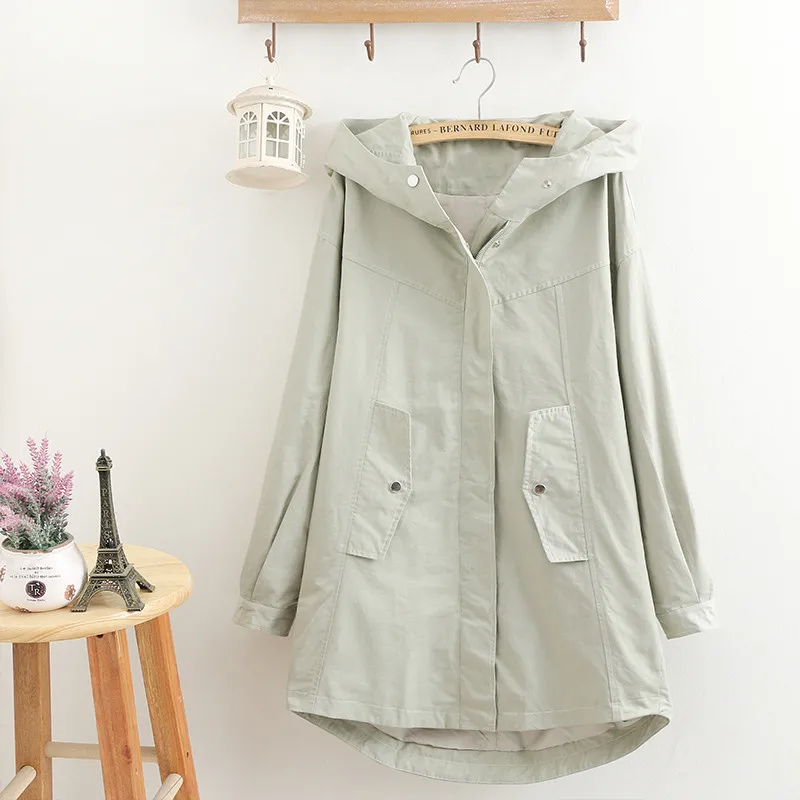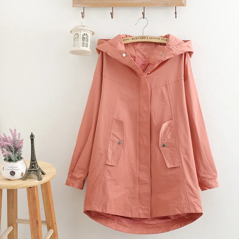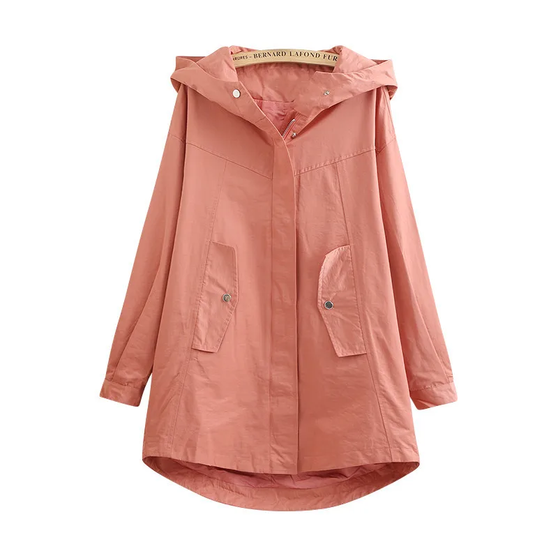 Тренч Женский однотонный с капюшоном, ветровка средней длины, Повседневные базовые пальто, размера плюс 5XL, весна-осень 286