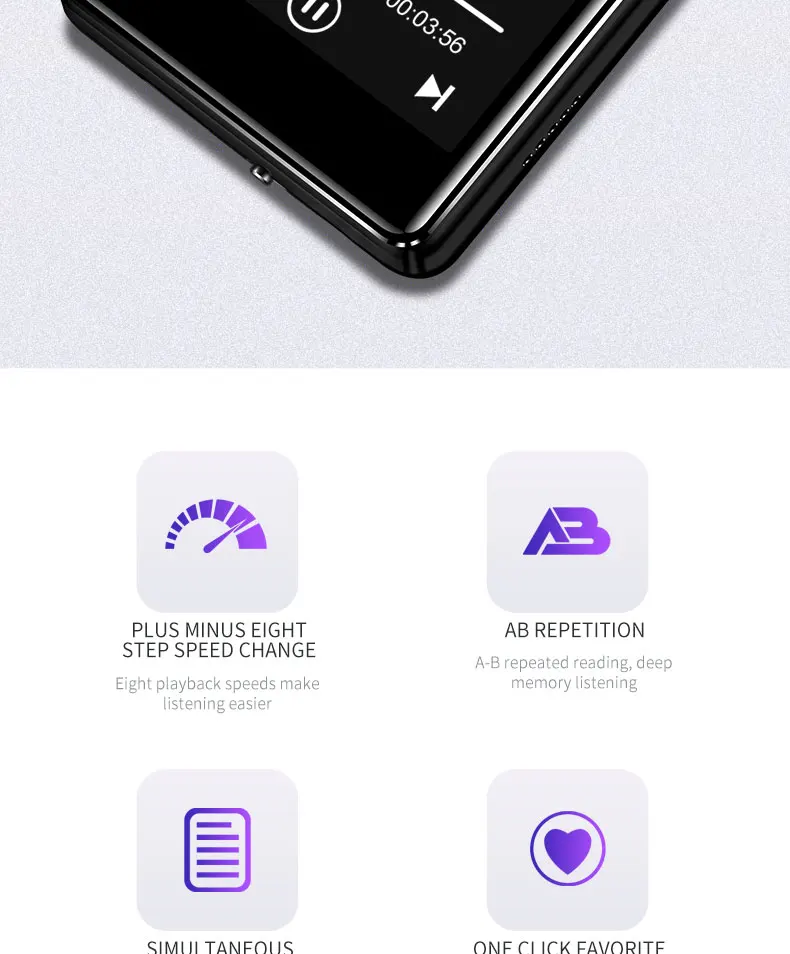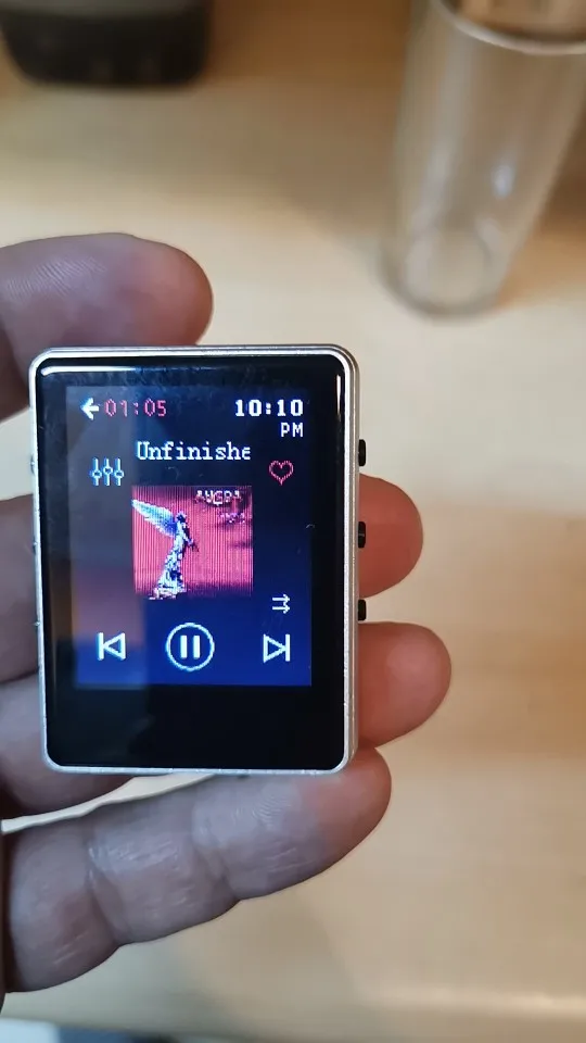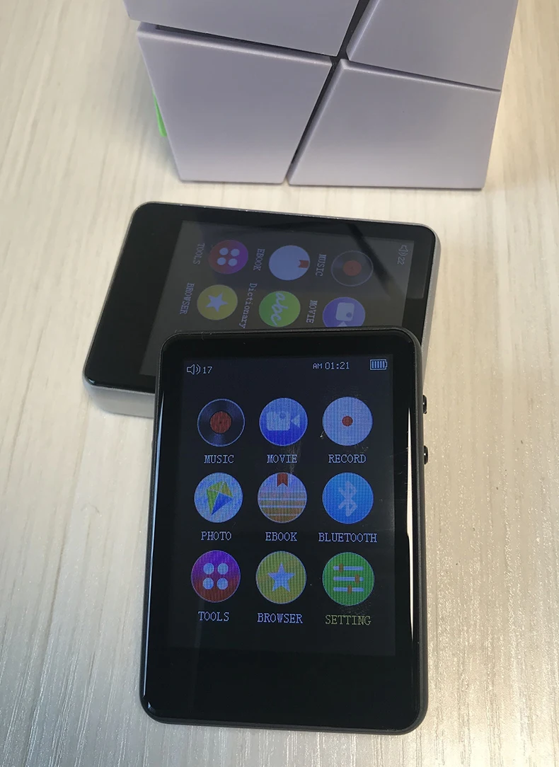 Получила плеер довольно таки быстро. Обычно дольше посылки с Китая идут. Плеер компактный и при этом приятно тяжёлый, ничего не люфтит и не трещит, не похож на дешёвку. Понятное управление кнопки+сенсор (не очень чувствительный) . Порадовали отдельные кнопки для громкости, кто пользовался плеерами Ruizu поймёт почему. Случайно выяснила что есть встроенный динамик, но слушать через него не рекомендую, удовольствия не получите, качество посредственное. Через Bluetooth подключила свои наушники Knowledge zenith ZSN-Pro, звук хороший. А вот передавать файлы на плеер через Bluetooth не получится, только по поводу или через флэшку. В общем я в данный момент довольна покупкой.