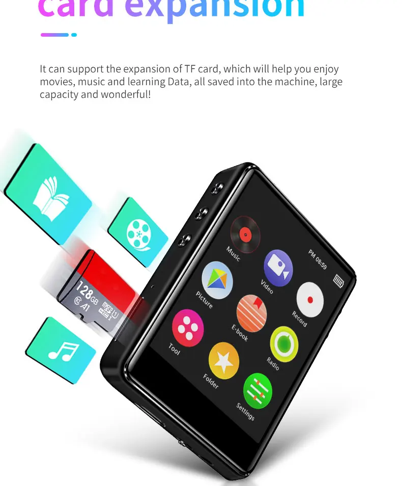 Mp3-плеер, металлический, Bluetooth 5,0, сенсорный экран, встроенный динамик 16 ГБ, с электронной книгой, FM-радио, для записи и воспроизведения видео