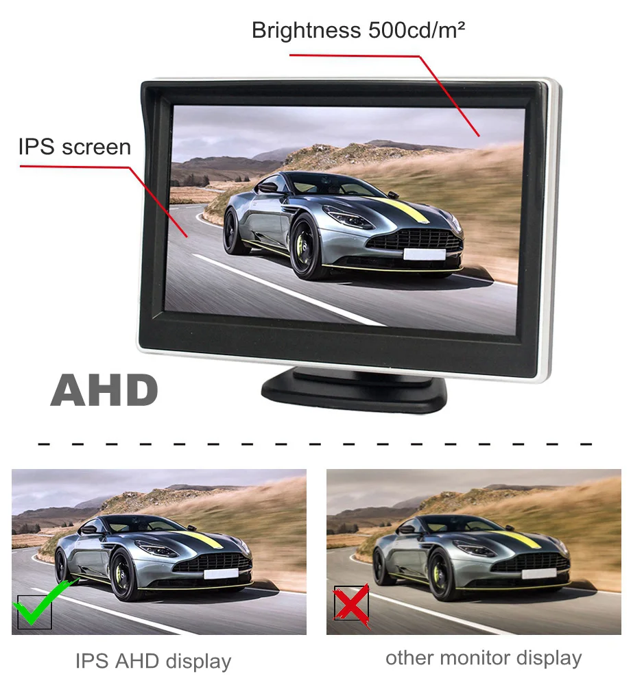 Монитор заднего вида DIYKIT, автомобильный монитор 5 "IPS AHD с присоской и бесплатным кронштейном для MPV, внедорожника, конного грузовика