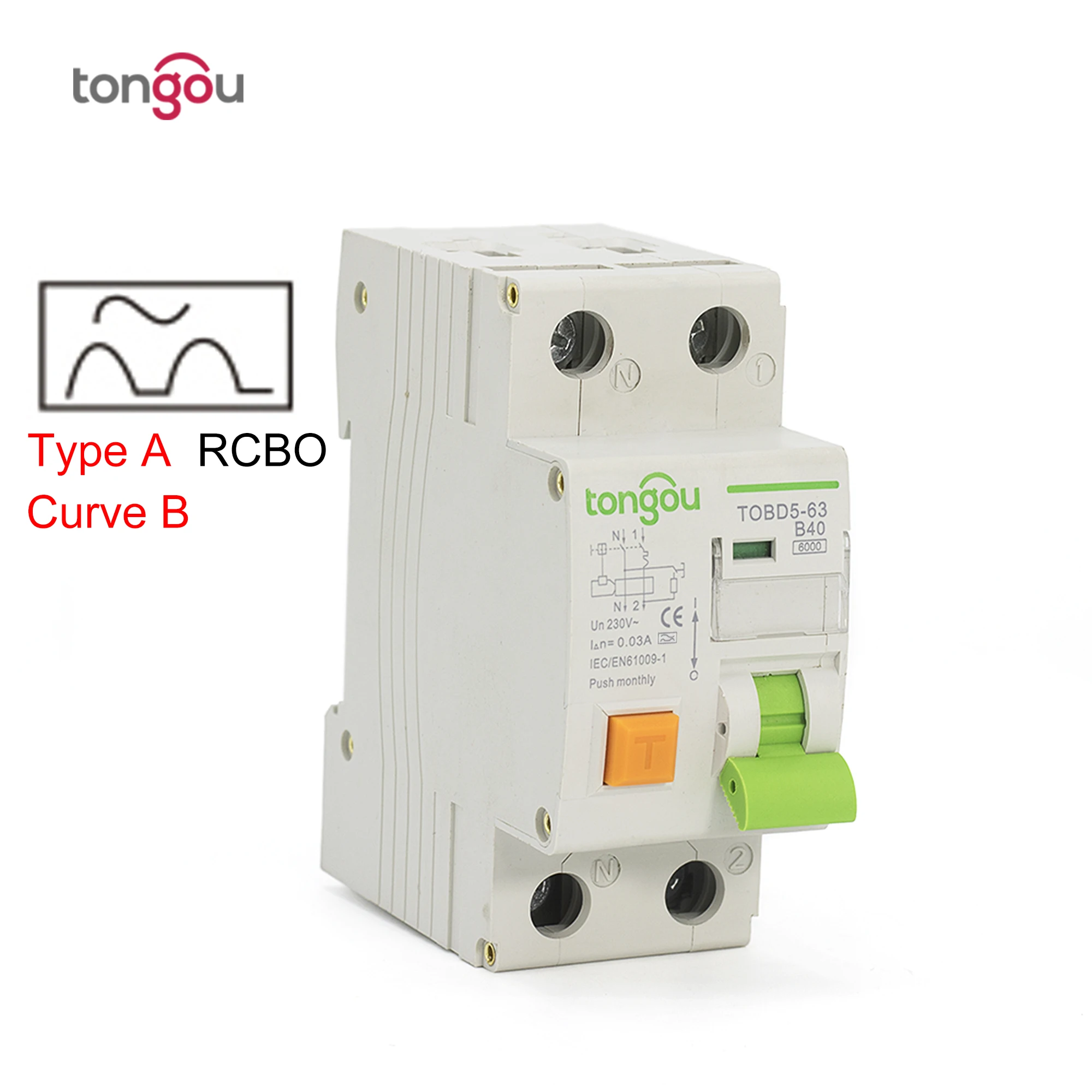 Тип A кривая B RCBO 6KA 1P + N 16A 40A электромагнитный автоматический выключатель с защитой от перегрузки по току и утечки