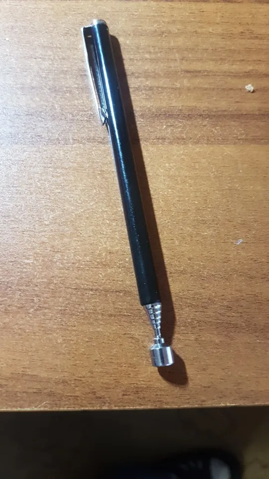 Пришло не быстро. Размер тонкой авторучки. Выглядит качественно. Примагничивает нормально для таких размеров, болт с гайкой на 12 поднимает, а больше мне не нужно.