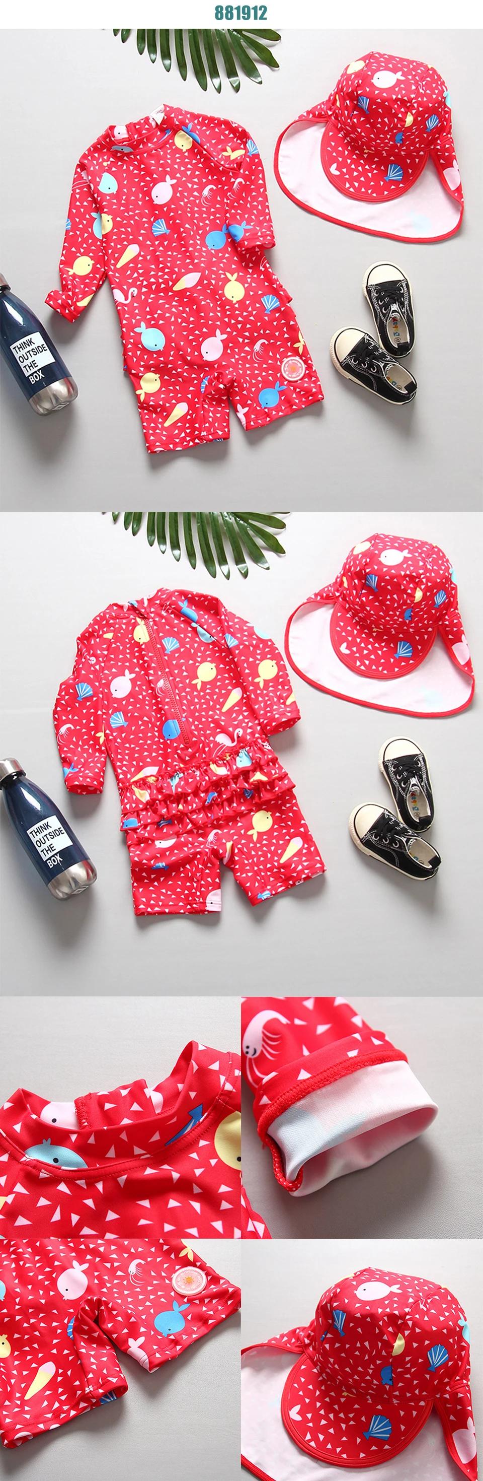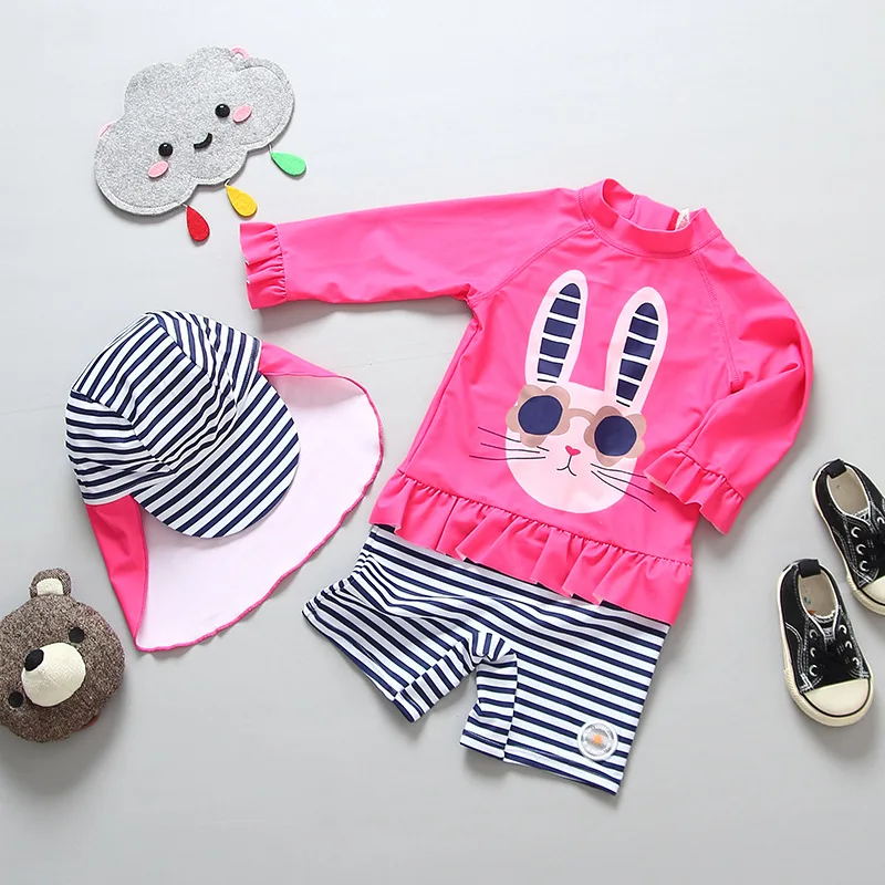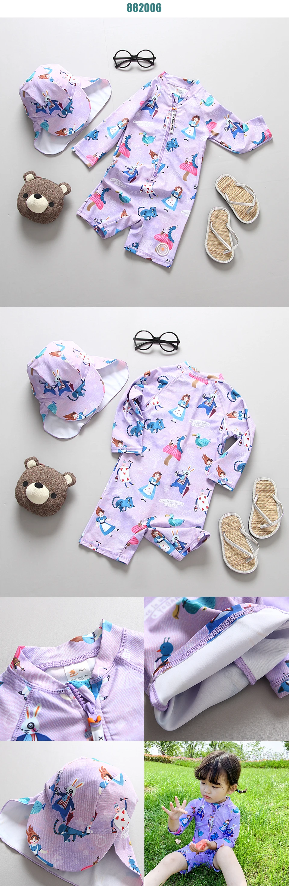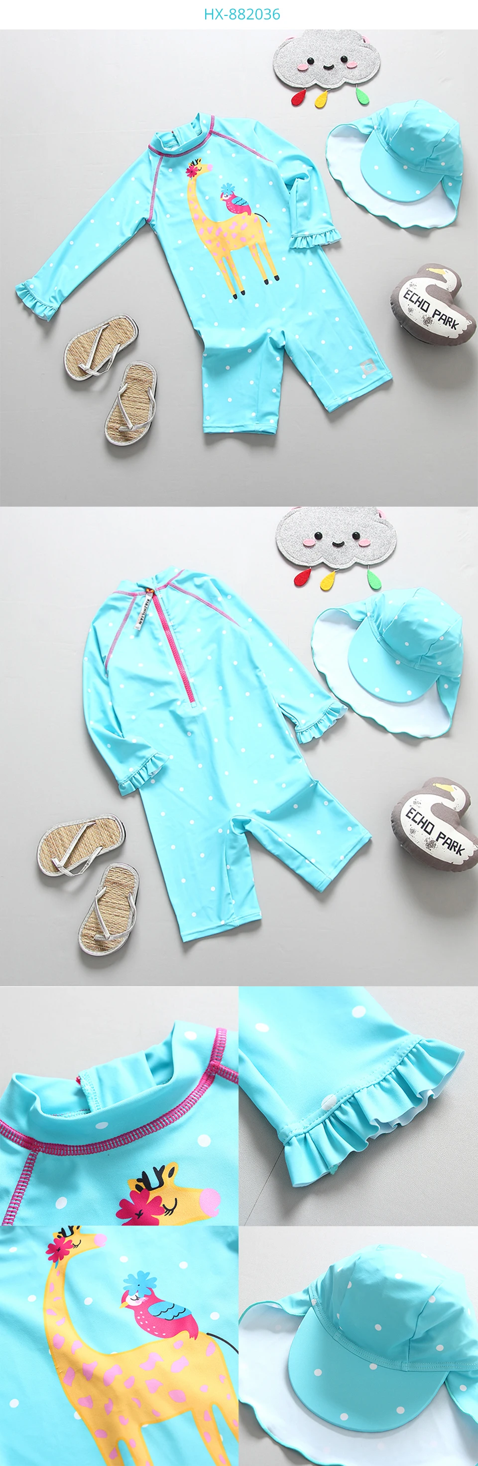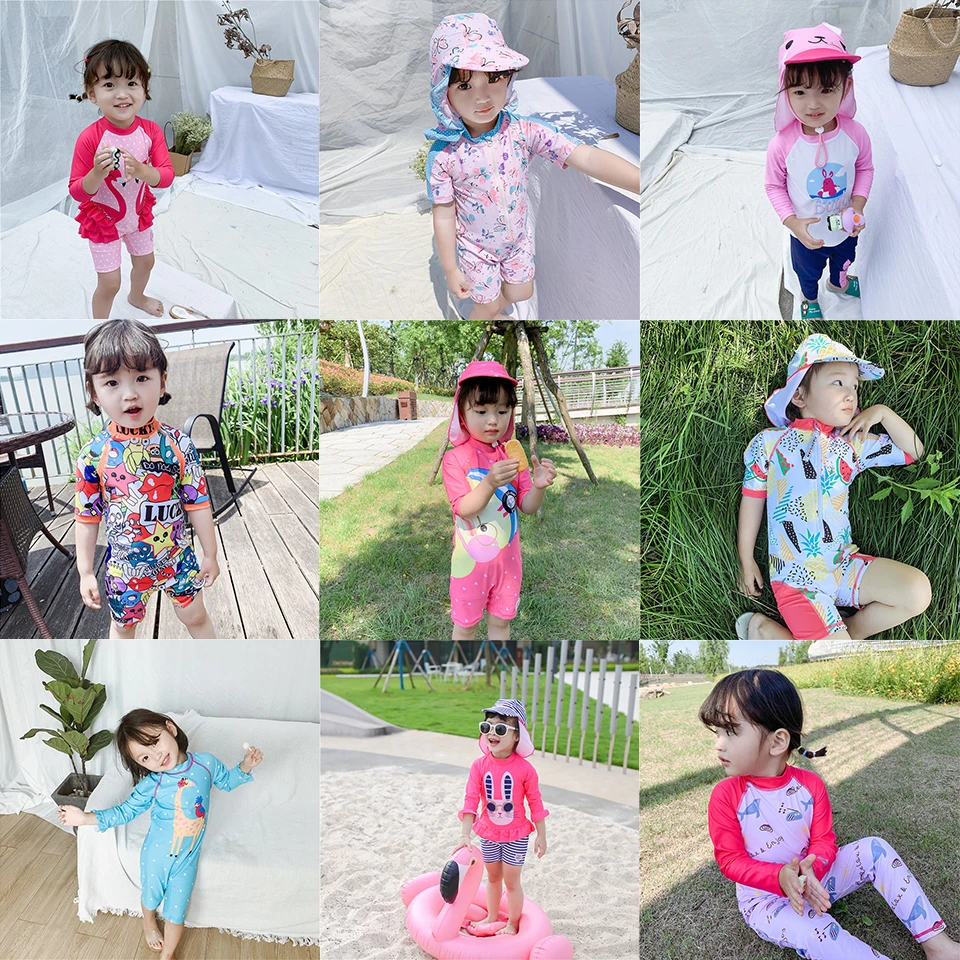 Слитный купальник для девочек, с длинными рукавами и защитой от ультрафиолета