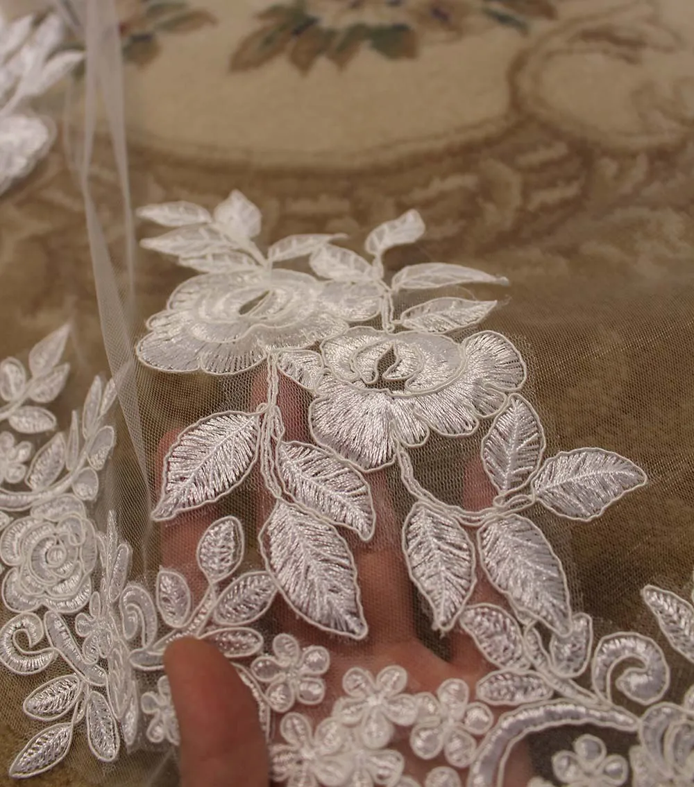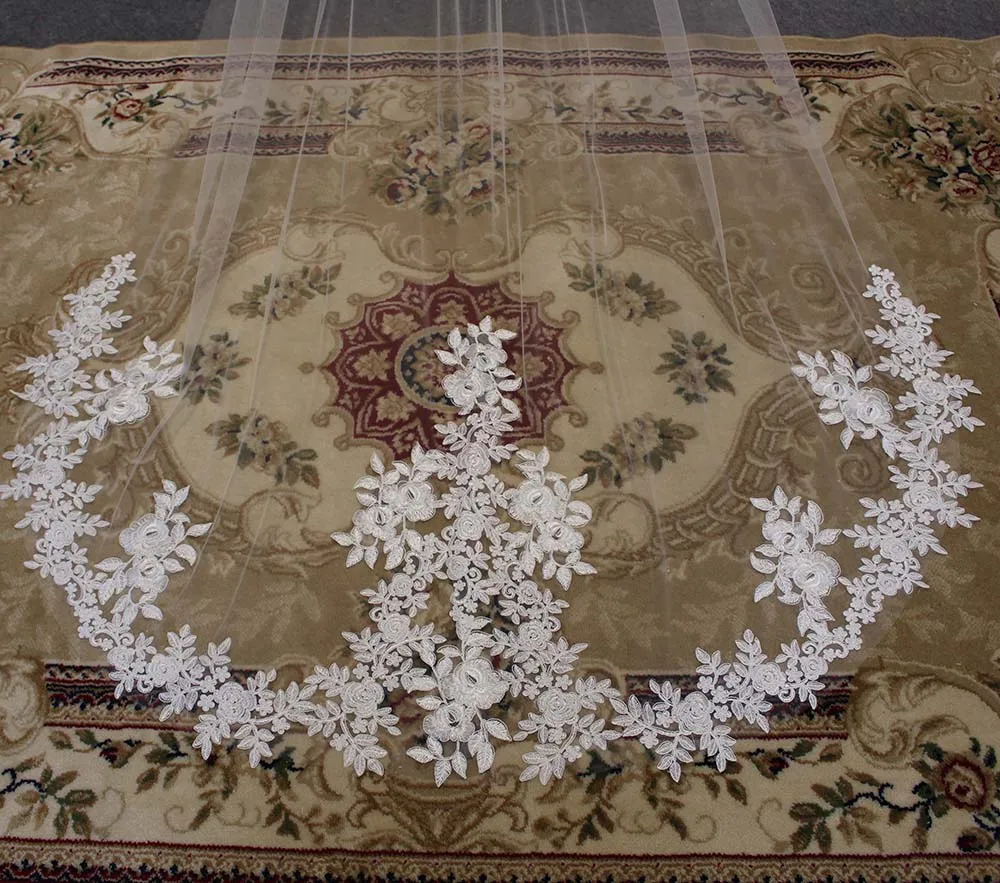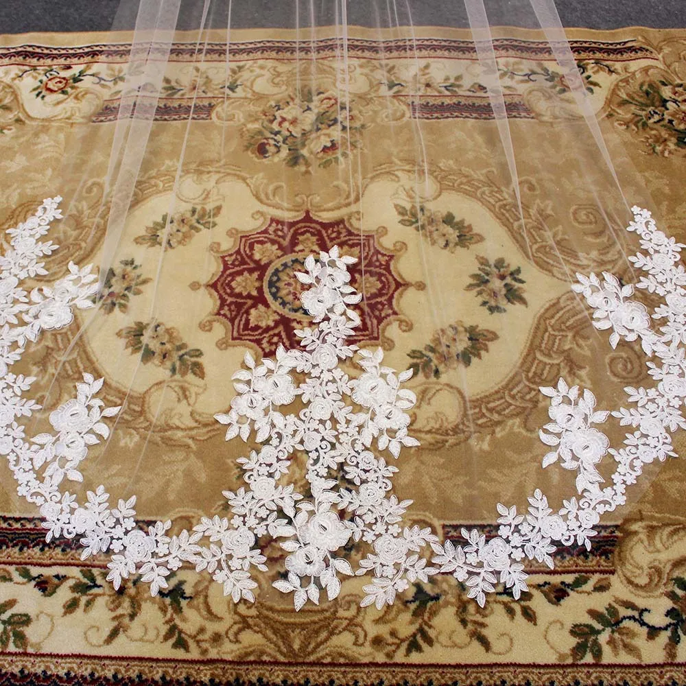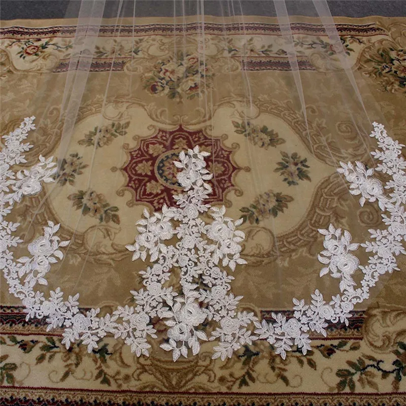 Фата свадебная Однослойная, элегантная кружевная с гребнем, 3 метры свадебная вуаль, Белыйцвет слоновой кости